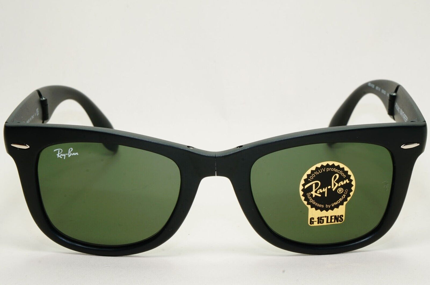 Ray-Ban Sunglasses Folding Wayfarer Black Matte Green G15 RB 4105 601-S 50mm
