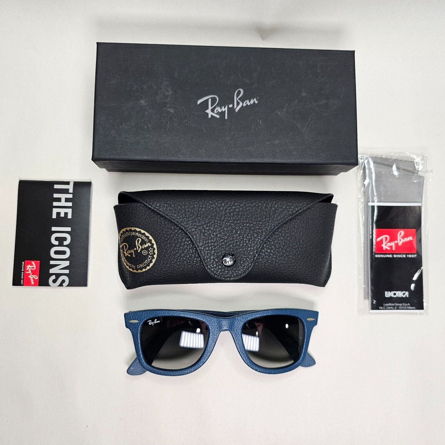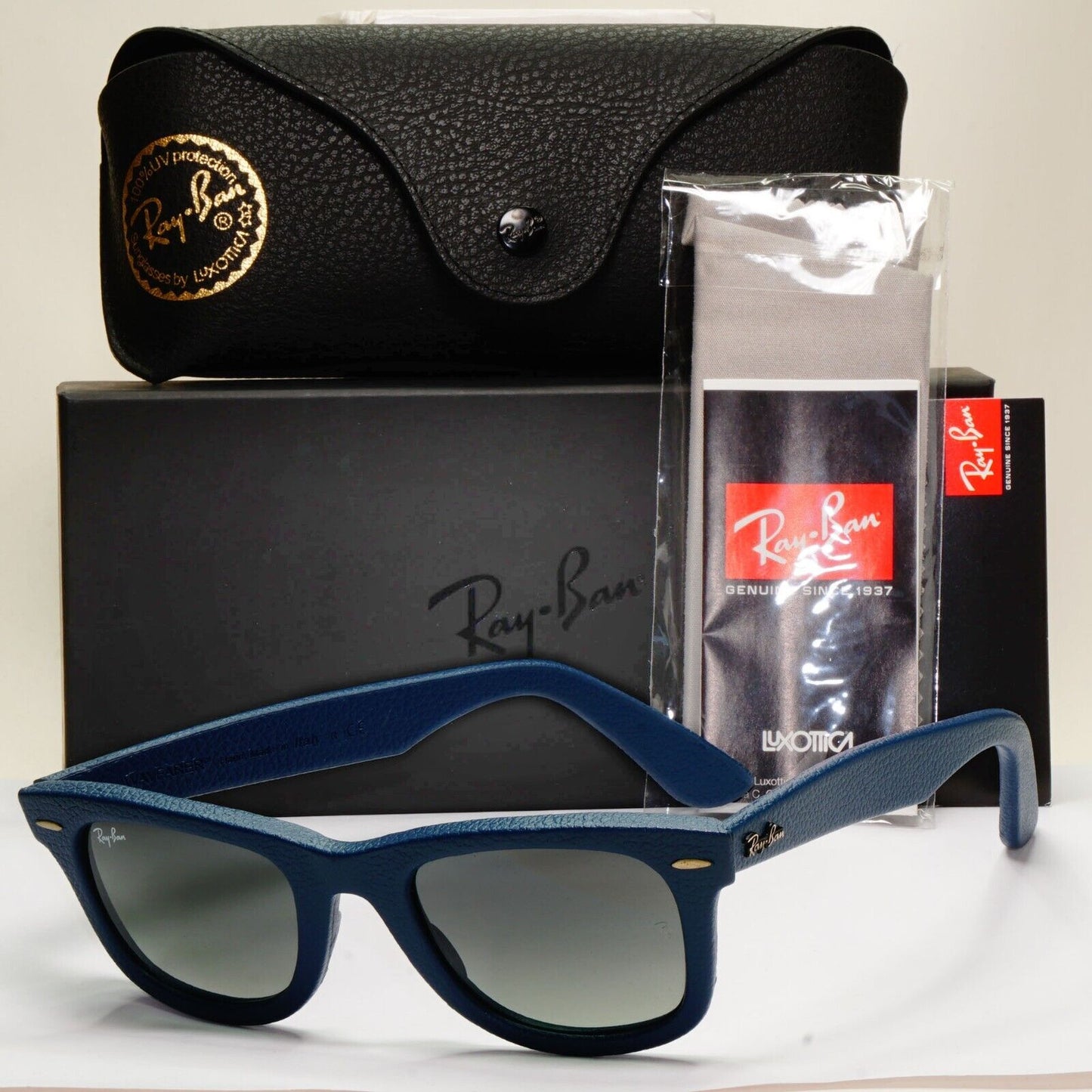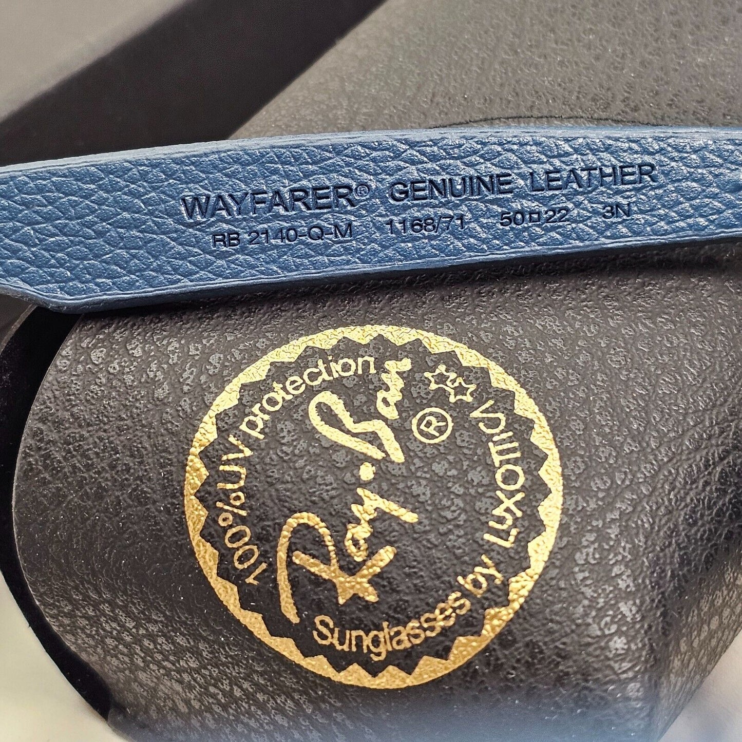 Ray-Ban Sunglasses Leather Wayfarer Year 2013 Rare Dark Blue RB 2140-Q-M 1168/71