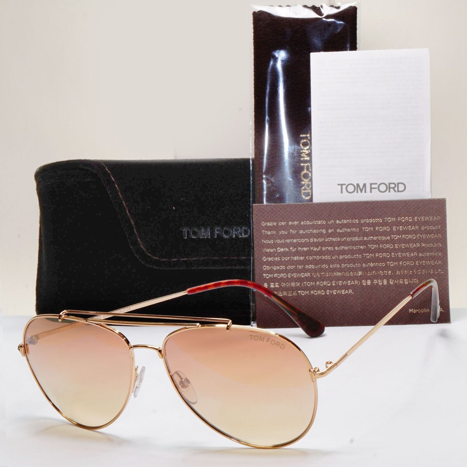 Tom Ford Sunglasses Indiana Gold Brown Gradient Metal Pilot FT0497 TF 497 28Z