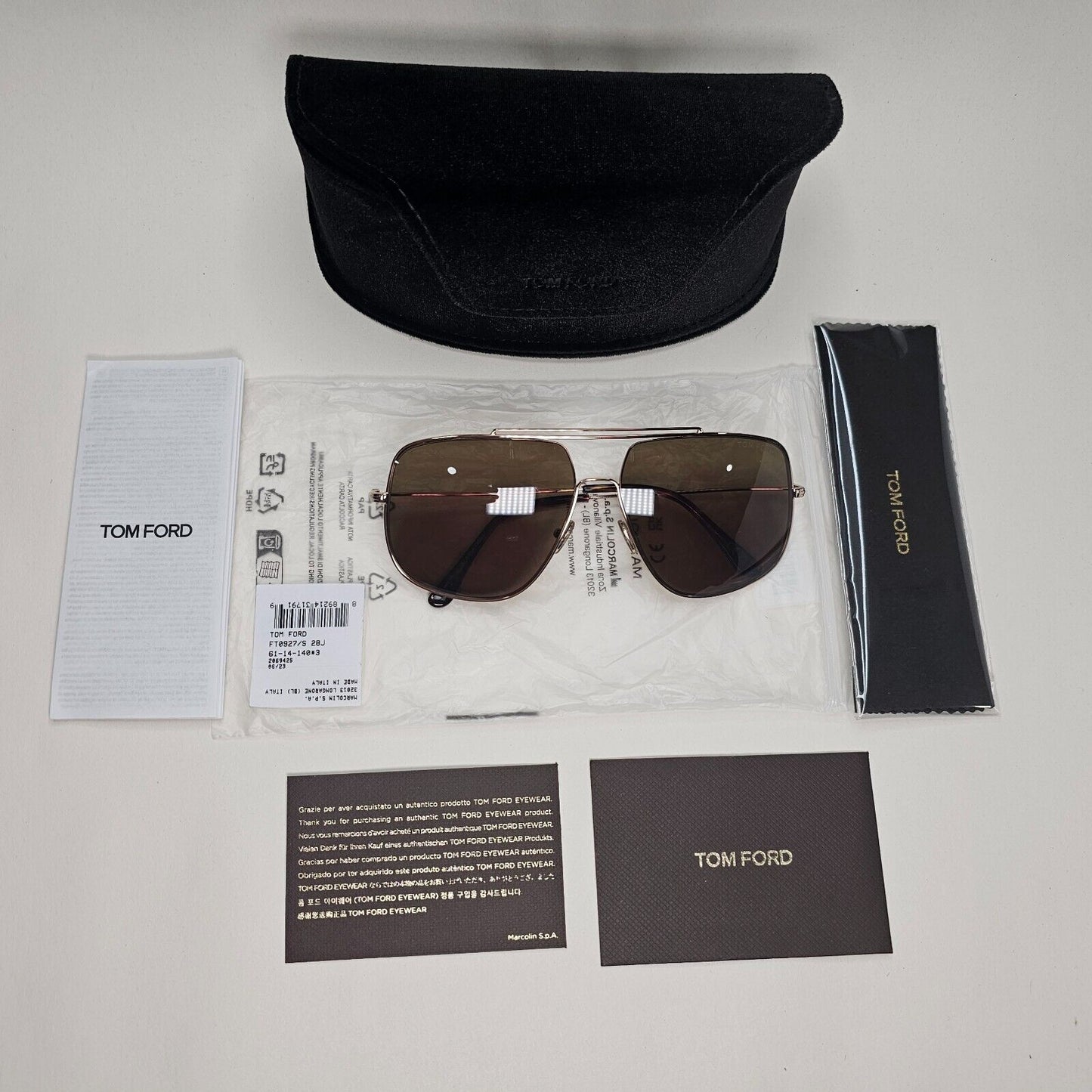 Tom Ford Sunglasses Liam Gold Brown Square Navigator Pilot FT0927 TF 927 28J