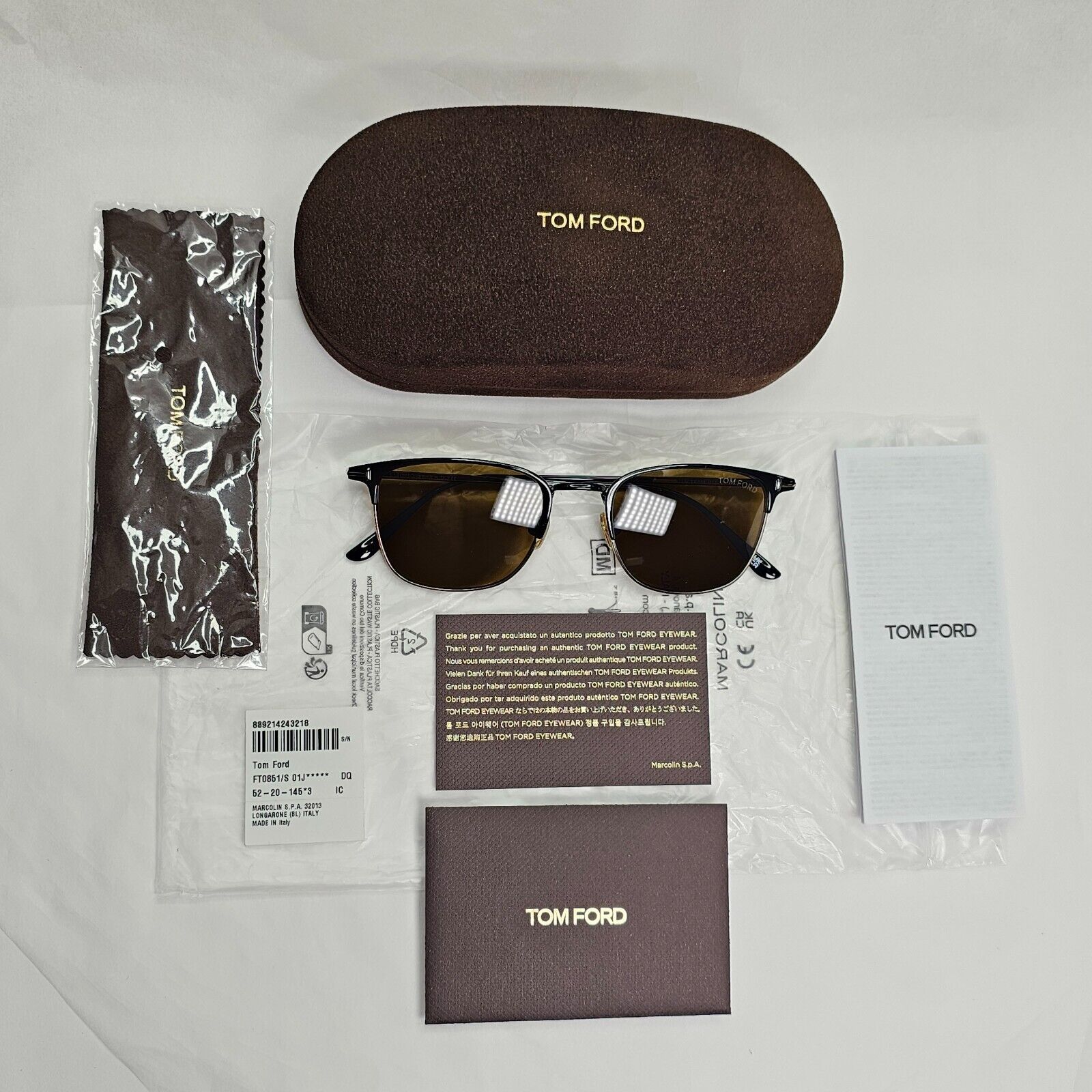 Tom Ford Sunglasses Liv Black Gold Brown Metal Square FT0851 TF 851 01J 52mm