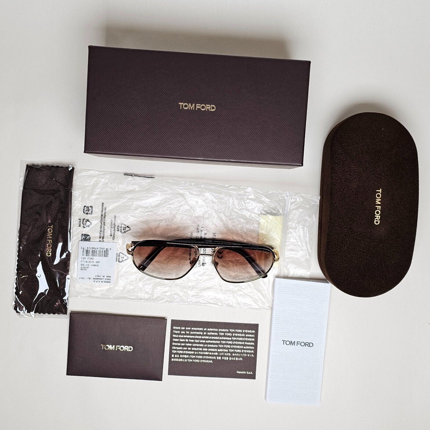 Tom Ford Sunglasses Maxwell Gold Brown Gradient Metal Pilot FT1019 TF 1019 30F