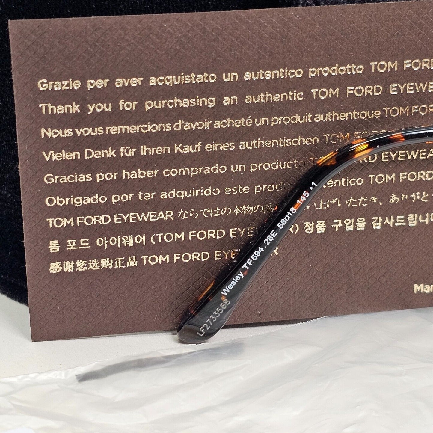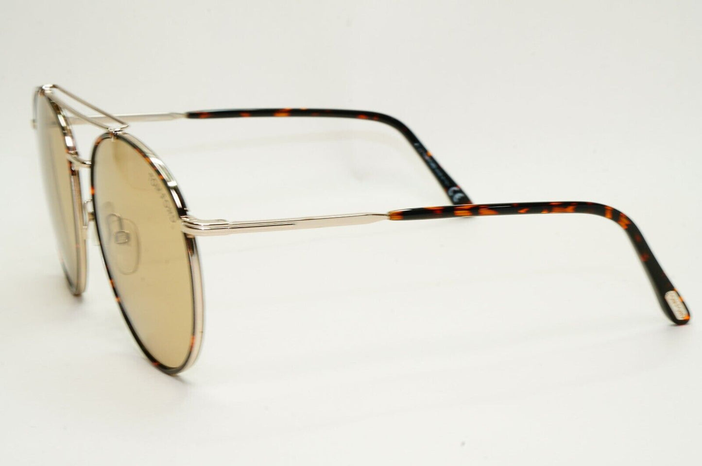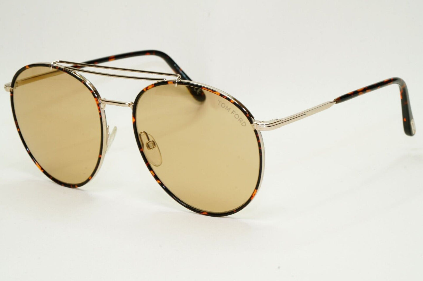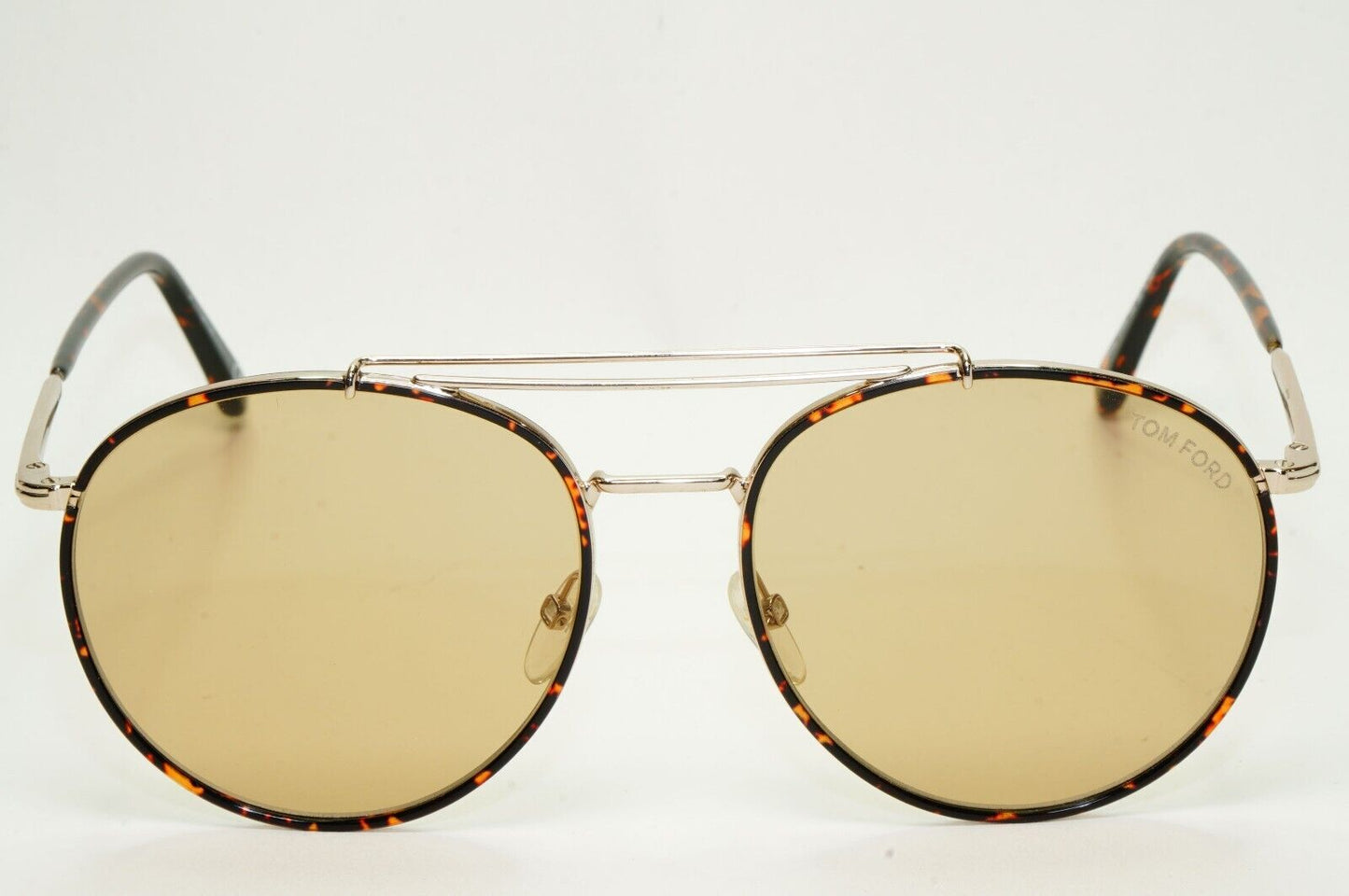 Tom Ford Sunglasses Wesley Gold Brown Tortoise Rims Round Pilot FT0694 TF694 28E