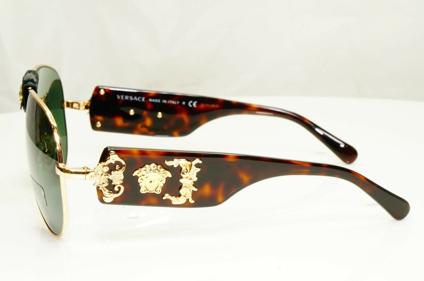 Versace Gold Medusa Ornate Brown Green Sunglasses Pilot Tortoise 2150-Q 1002/71