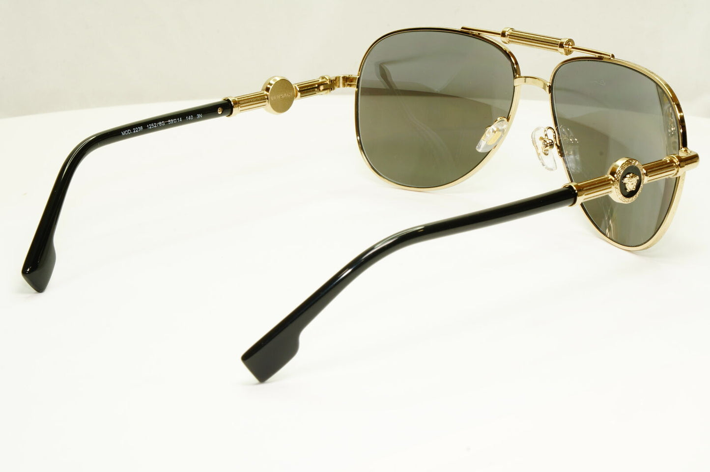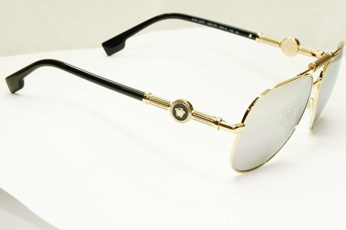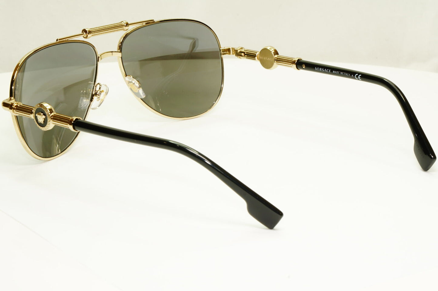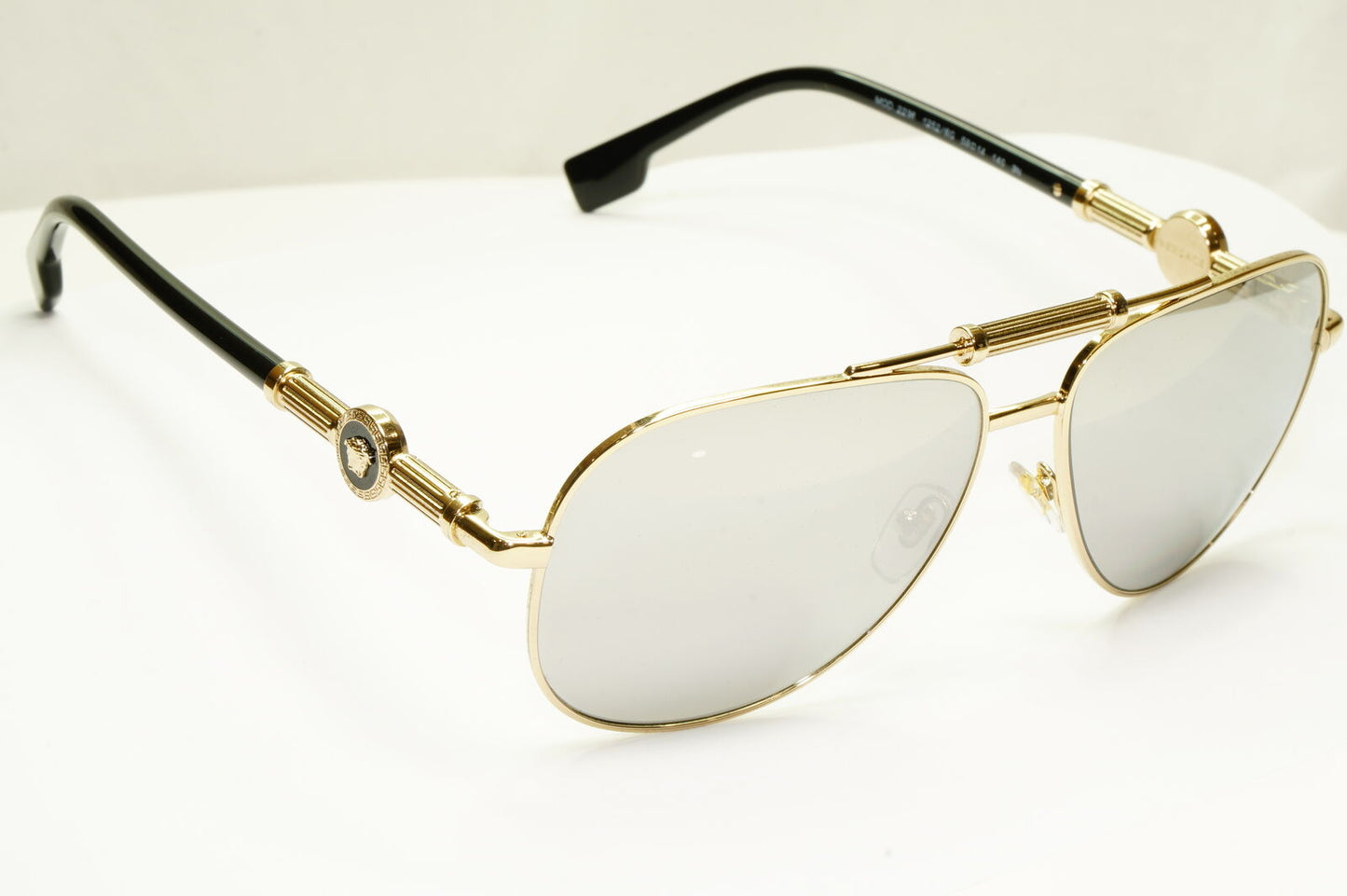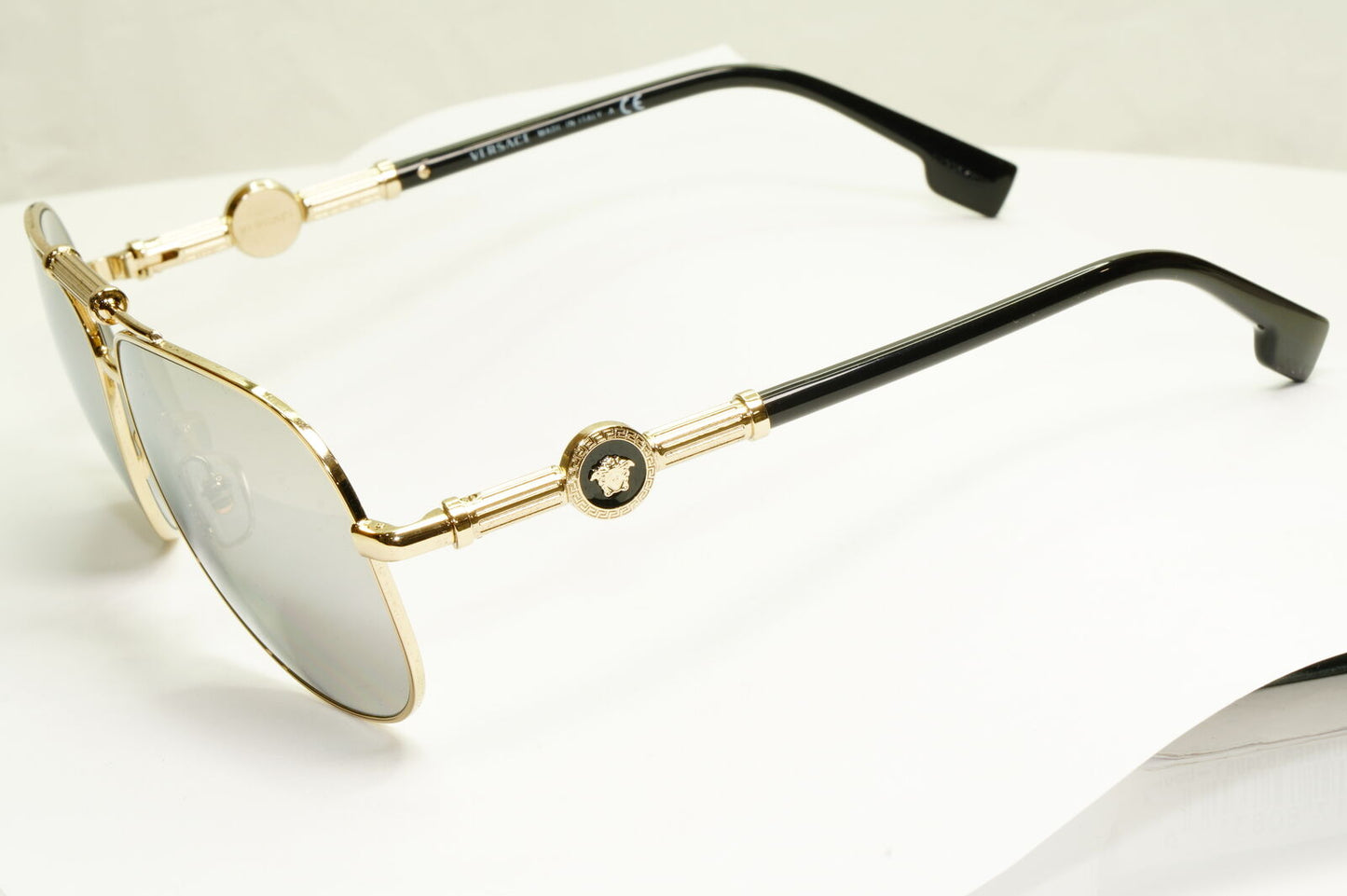Versace Silver Gold Medusa Sunglasses Mirror Pilot Mens MOD VE 2236 1252/6G