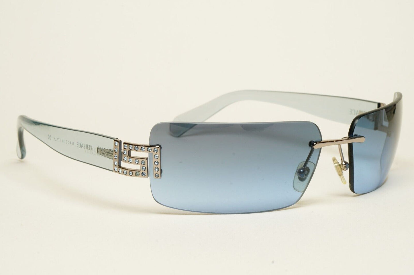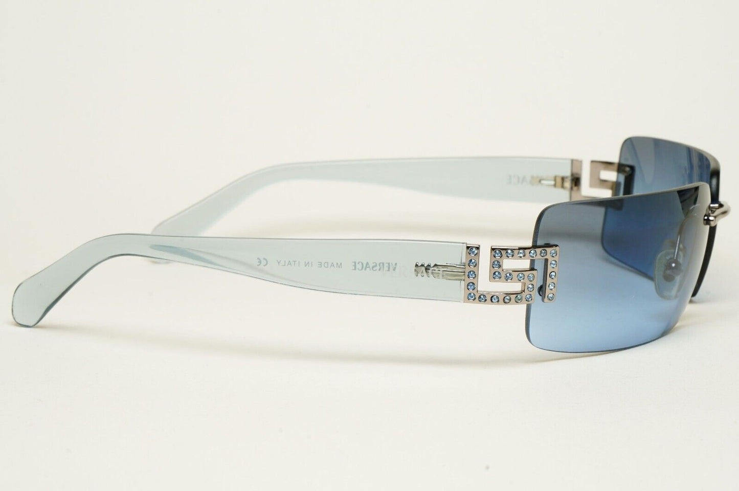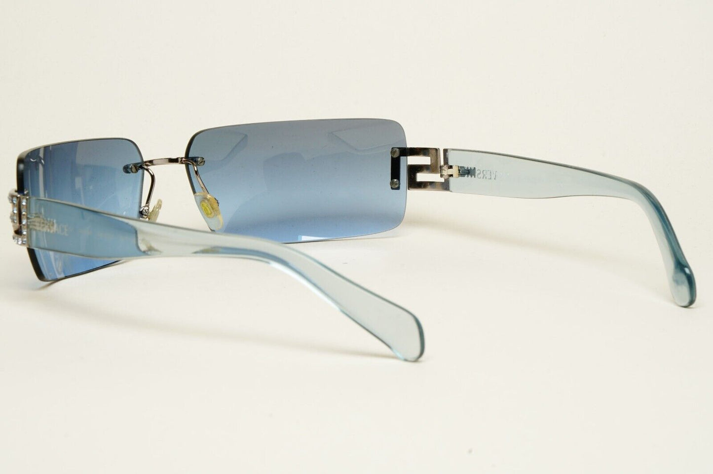 Versace Sunglasses 2004 Vintage Blue Rimless Diamante MOD 2017-B 1003/8F 170125