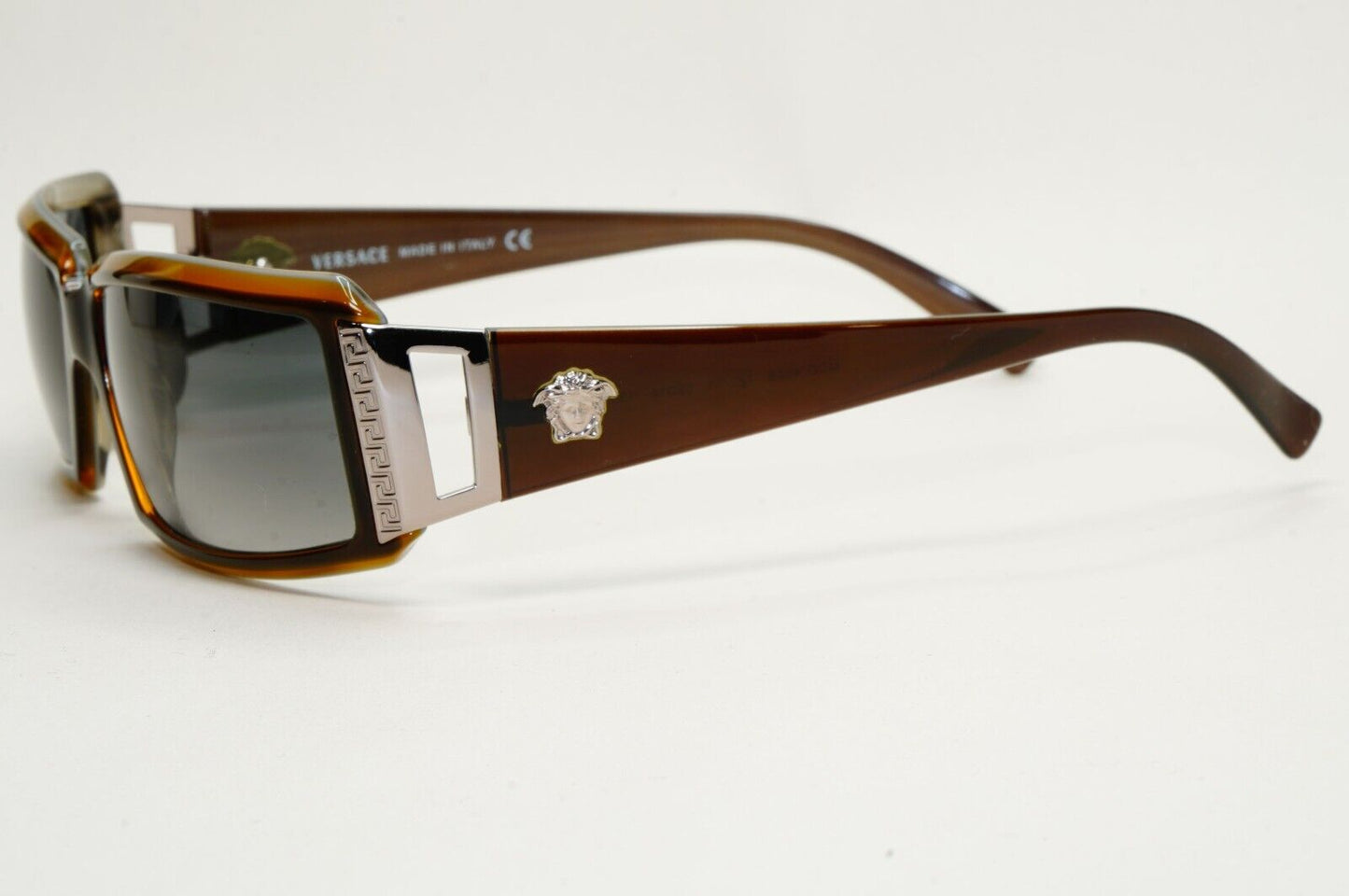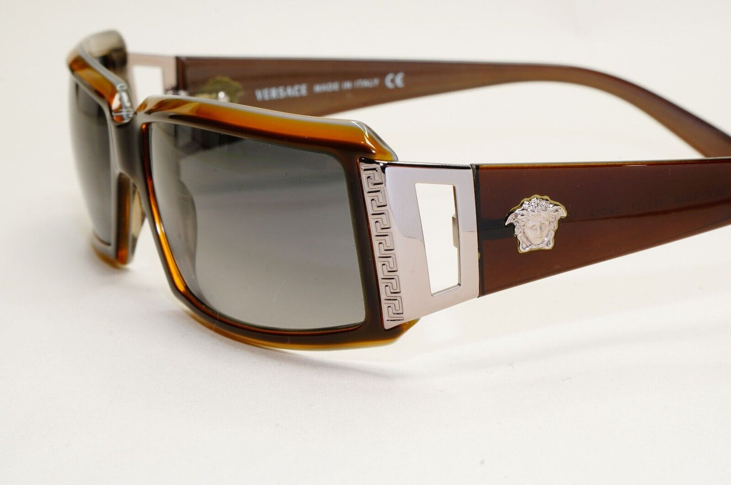 Versace Sunglasses 2004 Vintage Rectangle Wrap Brown Grey MOD 4048 182/11 120824