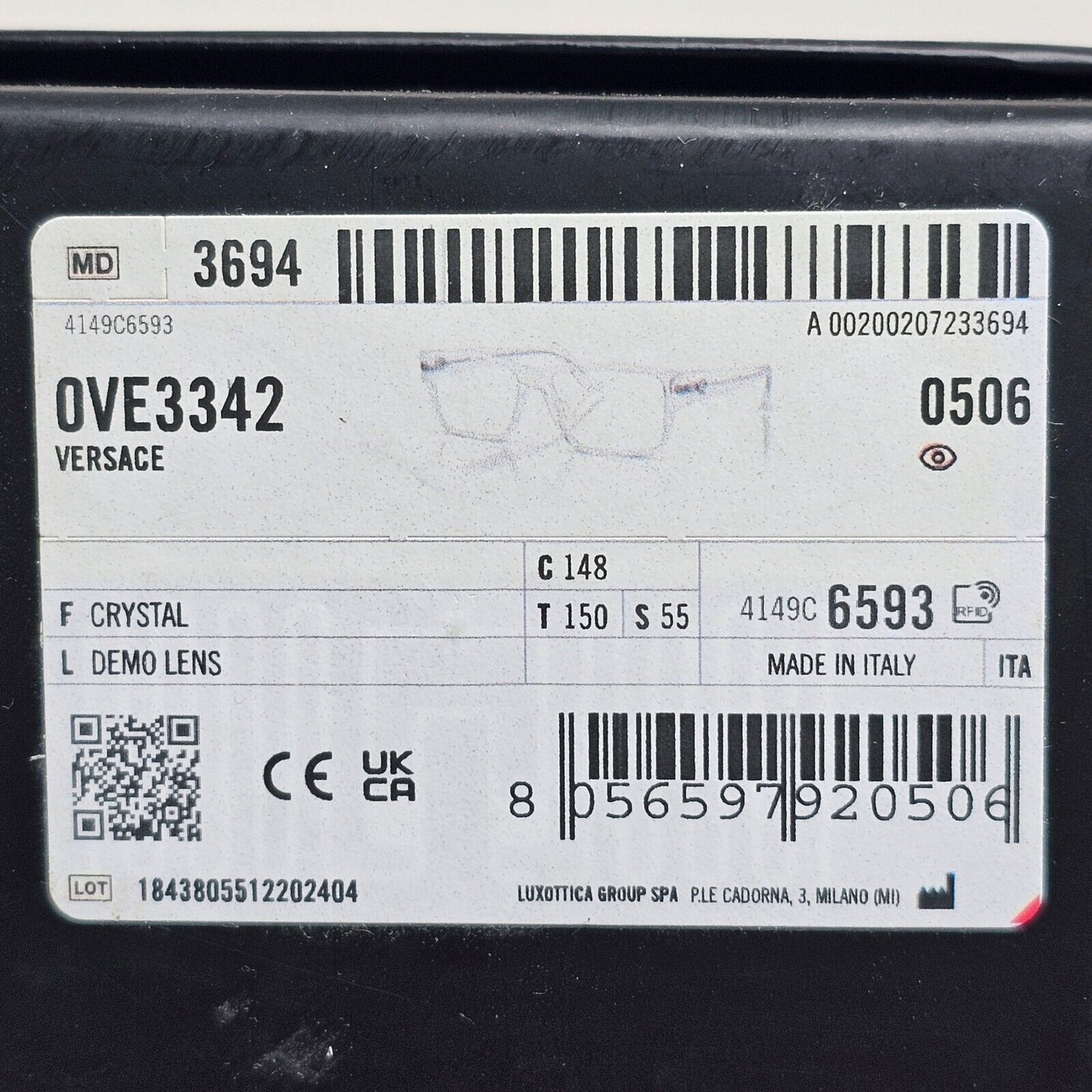 Versace Sunglasses Black Crystal Transparent Medusa Square MOD VE 3342 148 55mm