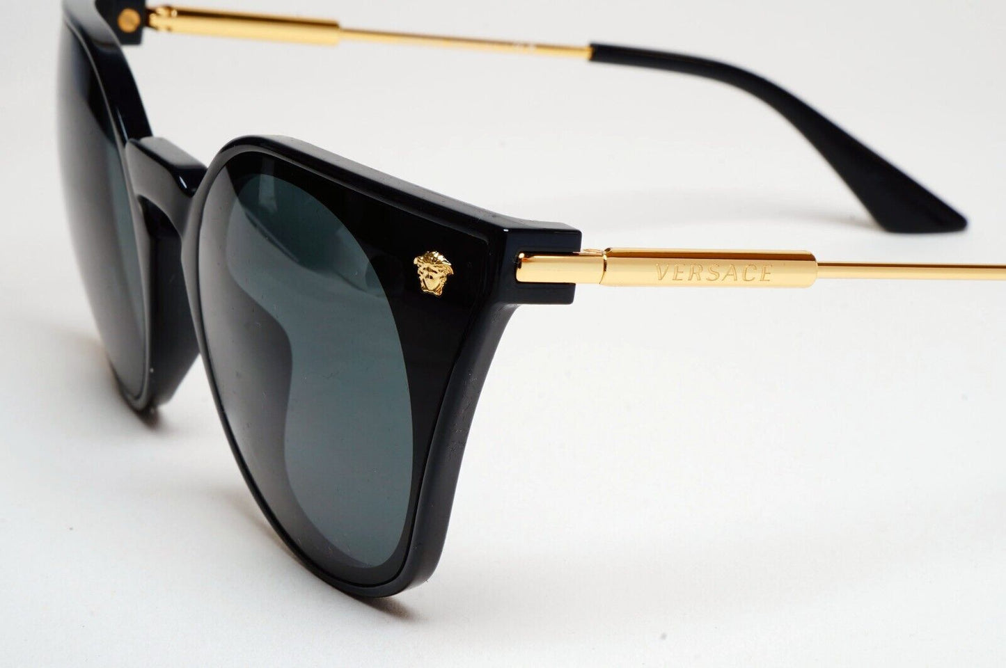 Versace Sunglasses Black Gold Cat Eye Medusa Dark Grey MOD VE 4410 GB1/87 60mm