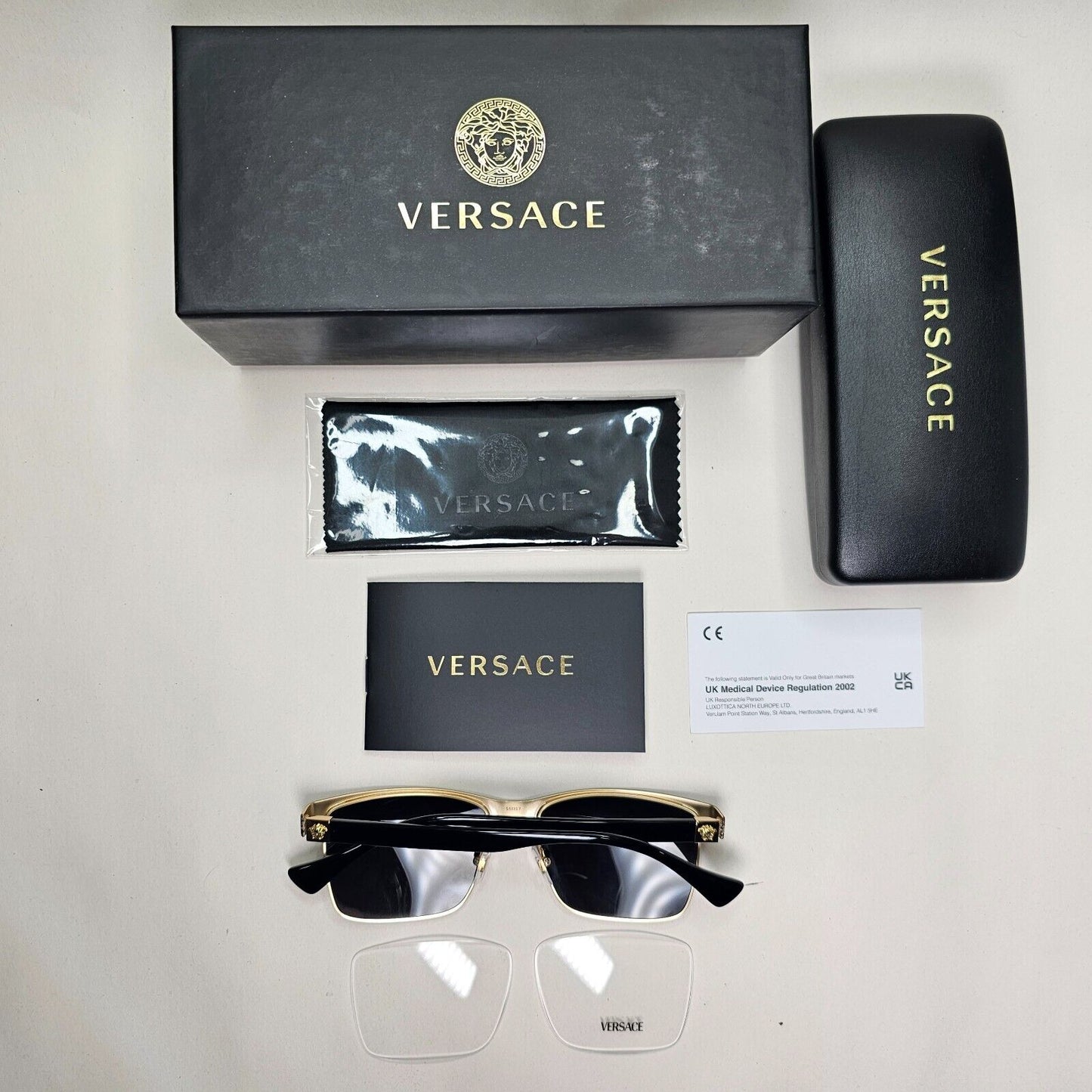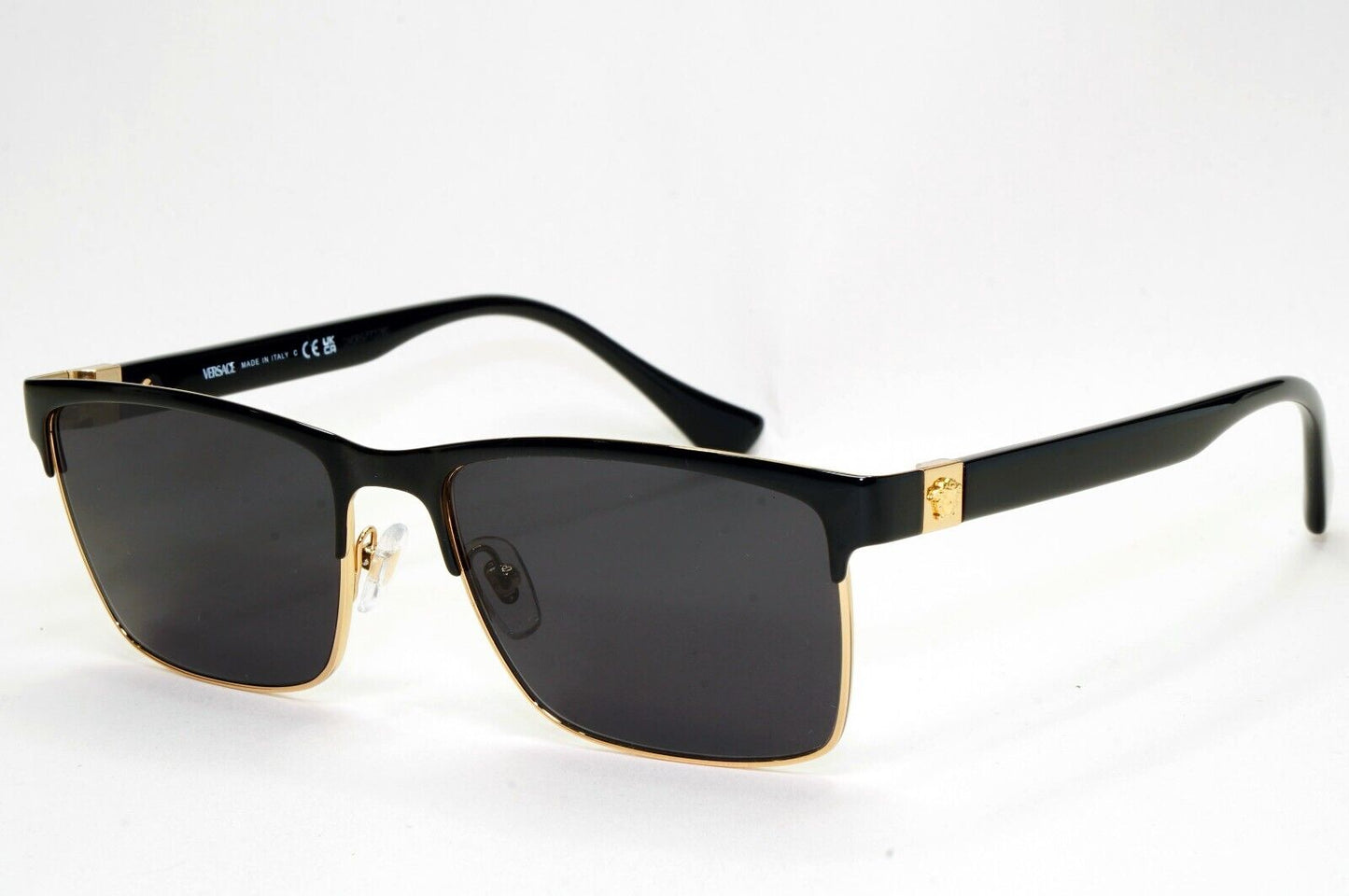 Versace Sunglasses Black Gold Medusa Metal Square MOD VE 1285 1443 56mm