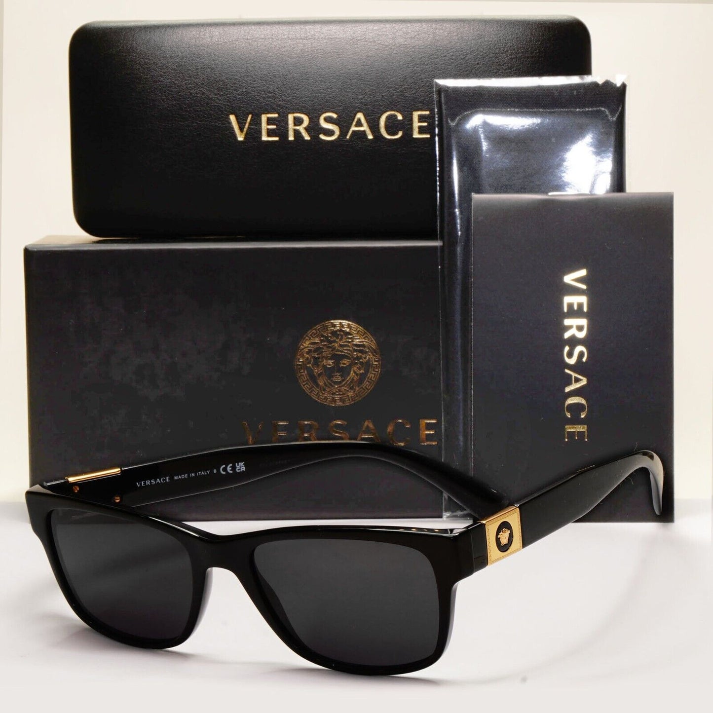Versace Sunglasses Black Gold Medusa Square Glossy MOD VE 3295 GB1 56mm