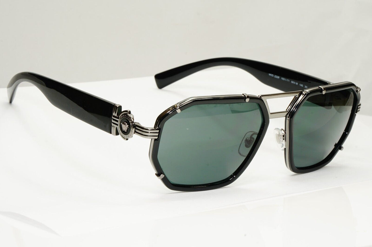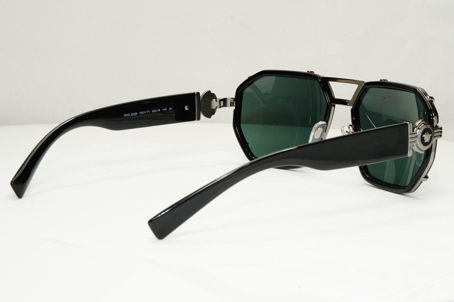 Versace Sunglasses Black Gunmetal Green Medusa Navigator MOD 2228 1001/71 58mm