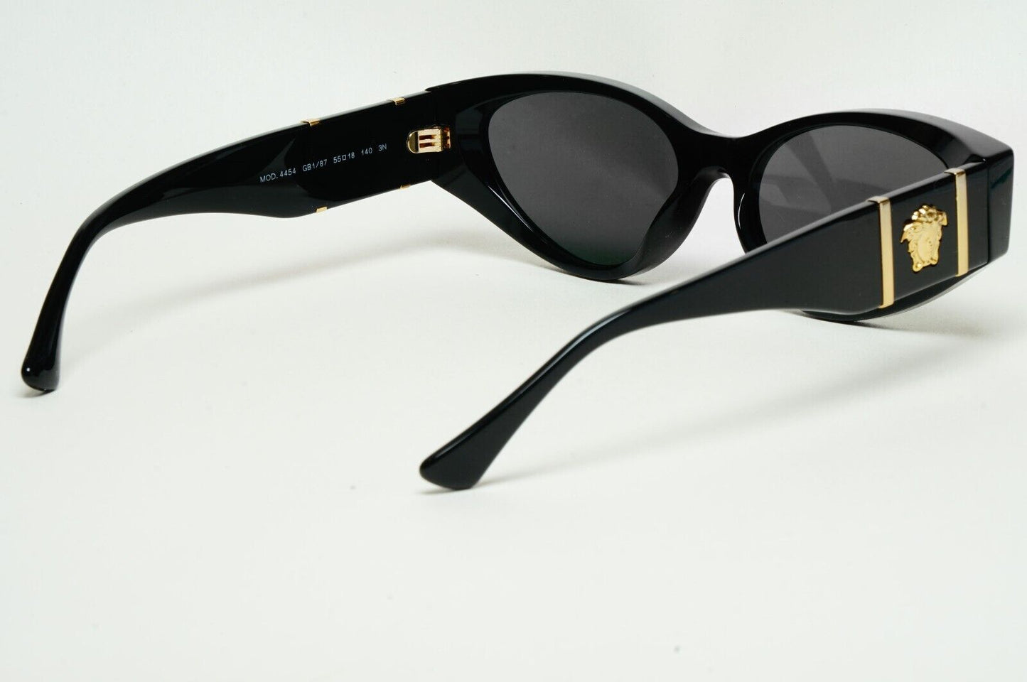 Versace Sunglasses Black Rectangle Grey Gold Medusa MOD VE 4454 GB1/87