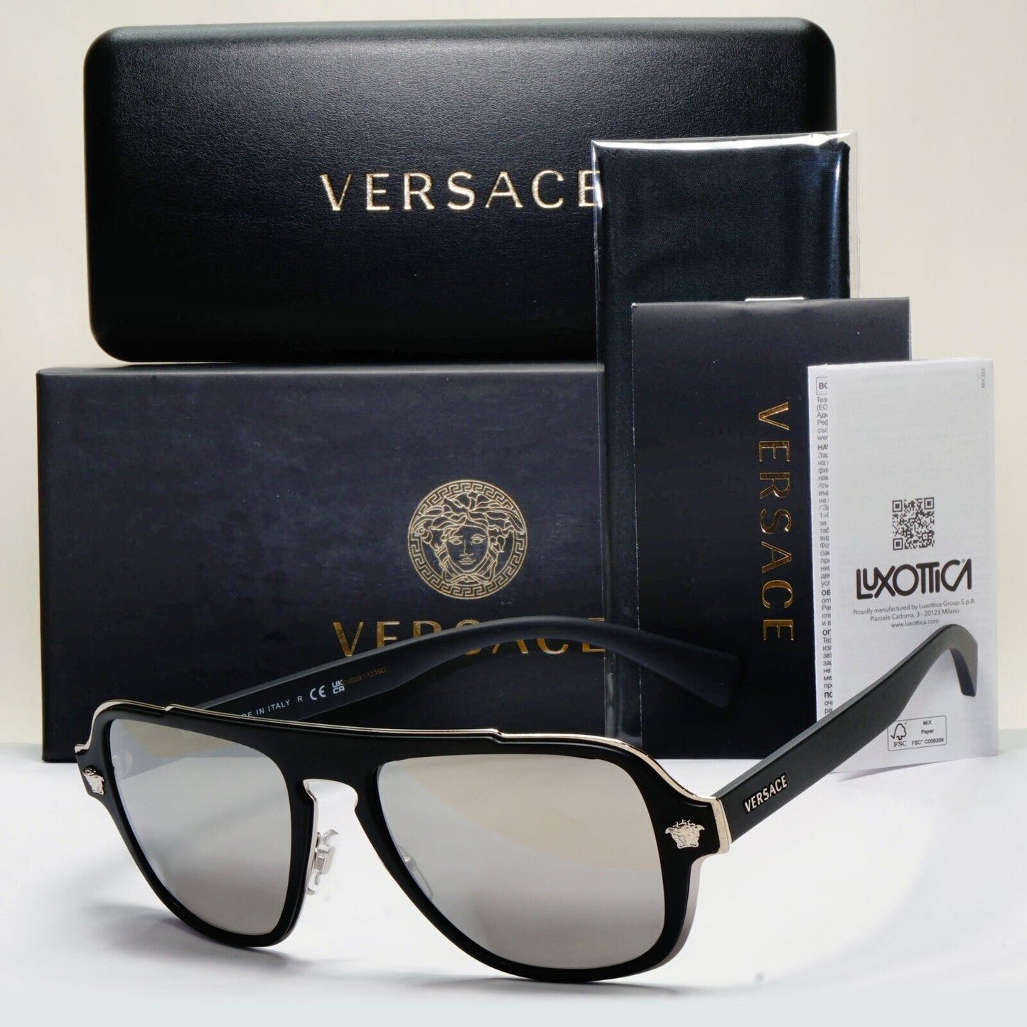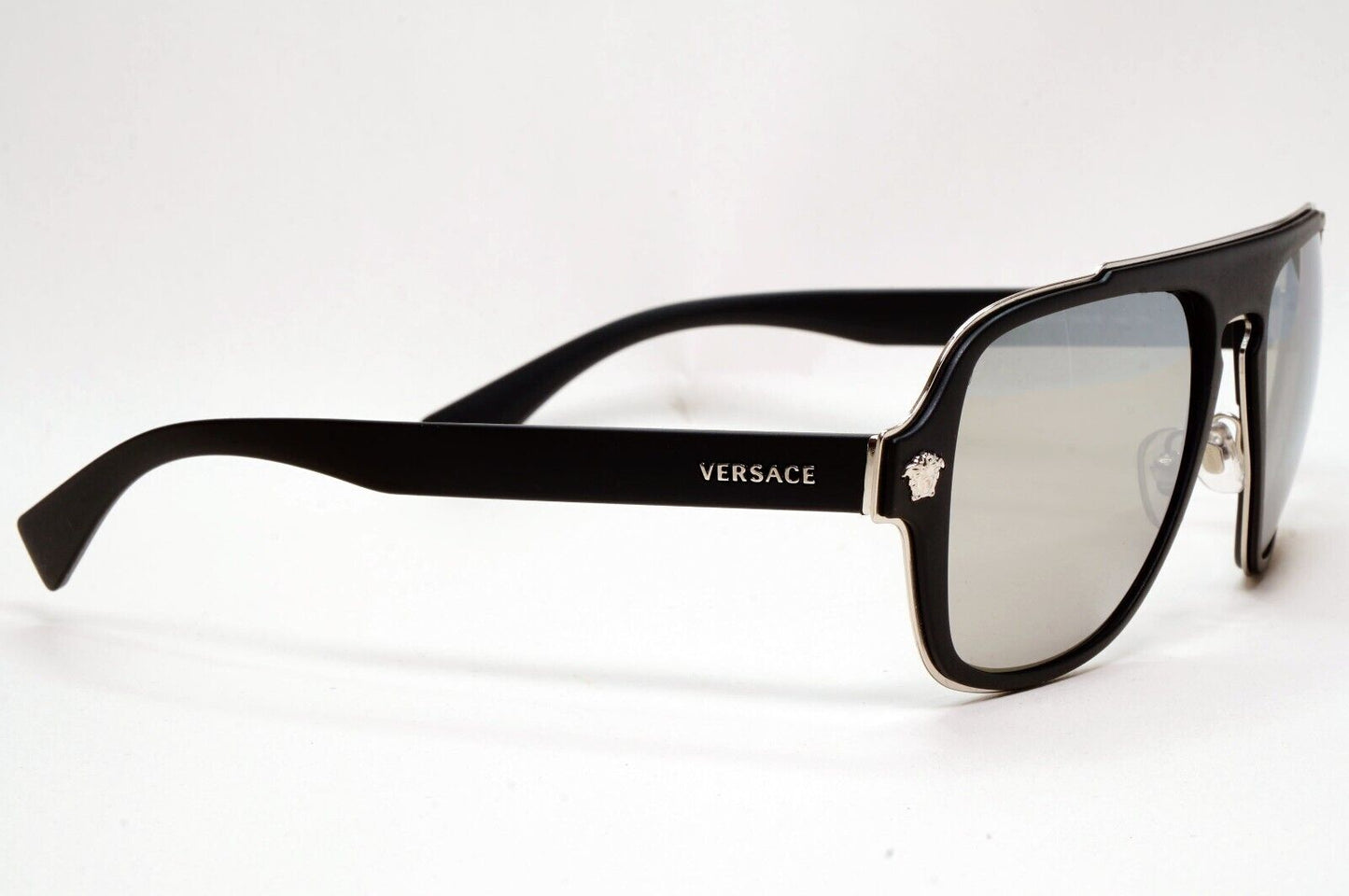 Versace Sunglasses Black Silver Medusa Mirror Square Matte MOD VE 2199 1000/6G