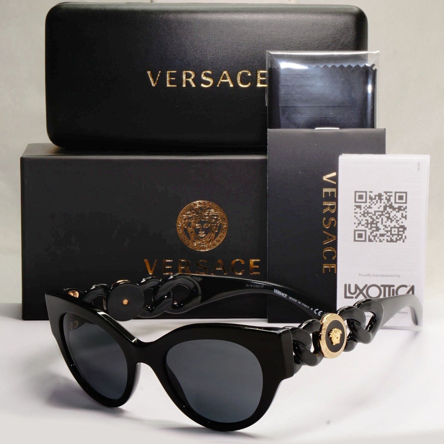 Versace Sunglasses Chain Black Gold Medusa Dark Grey MOD VE 4408 GB1/87 52mm