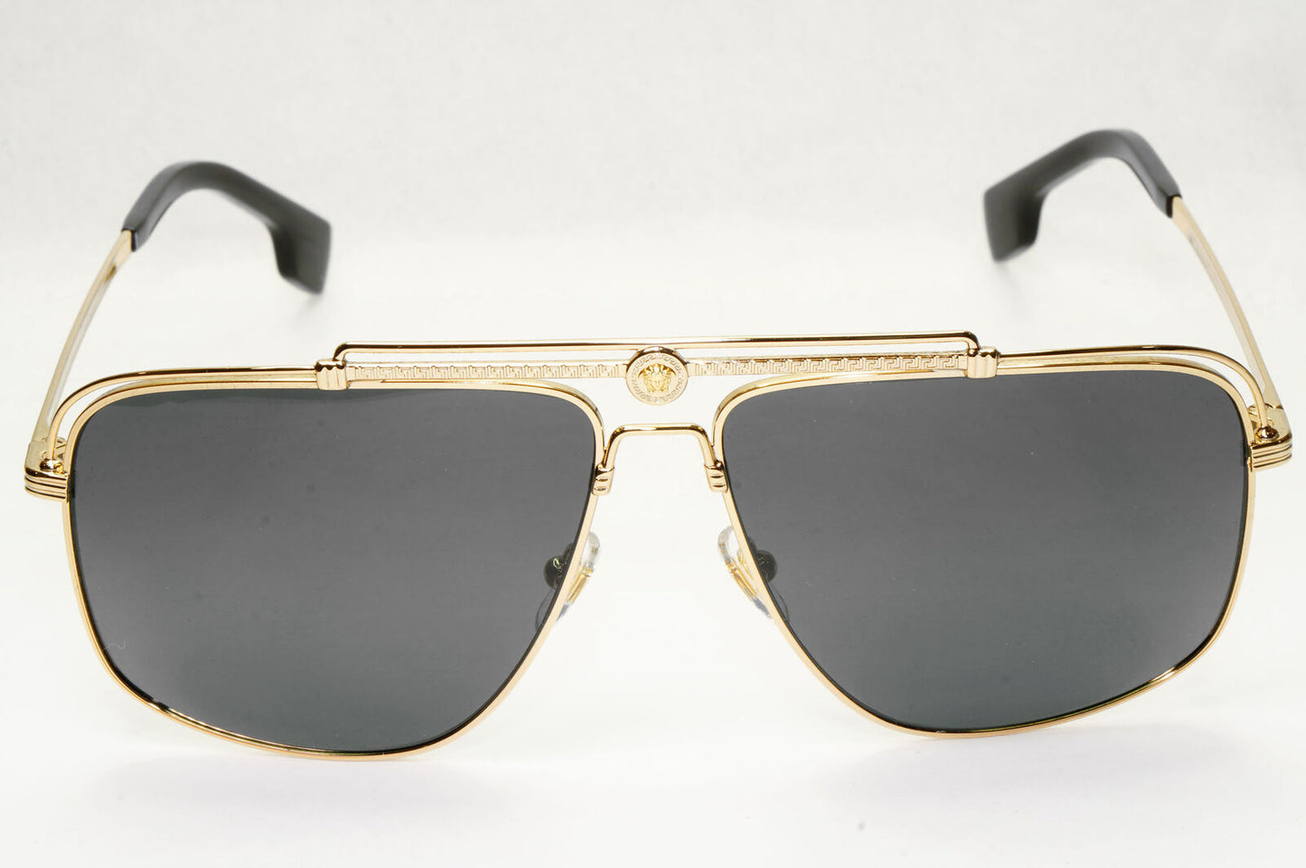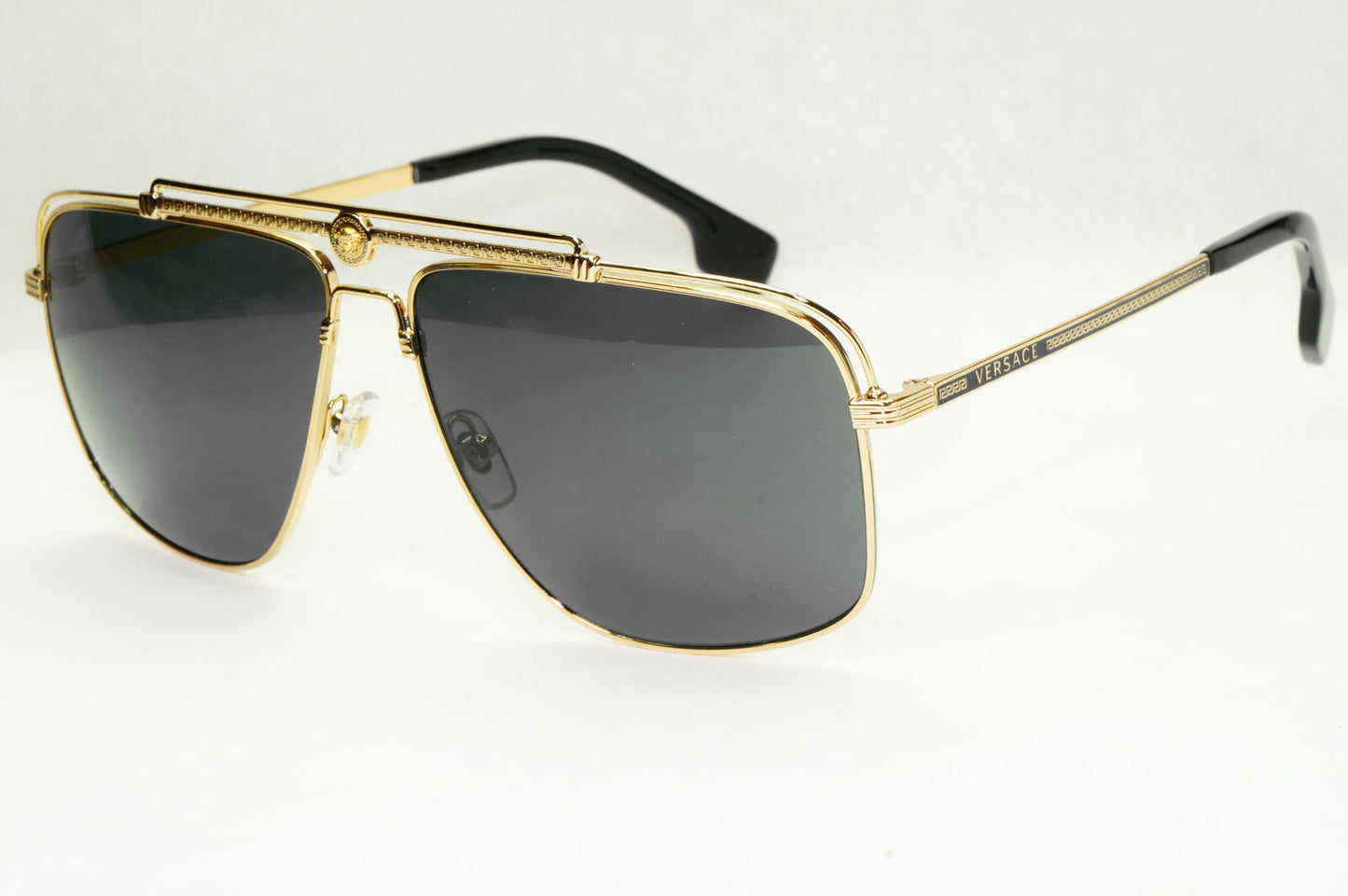 Versace Sunglasses Gold Black Medusa Square Meander MOD 2242 1002/87