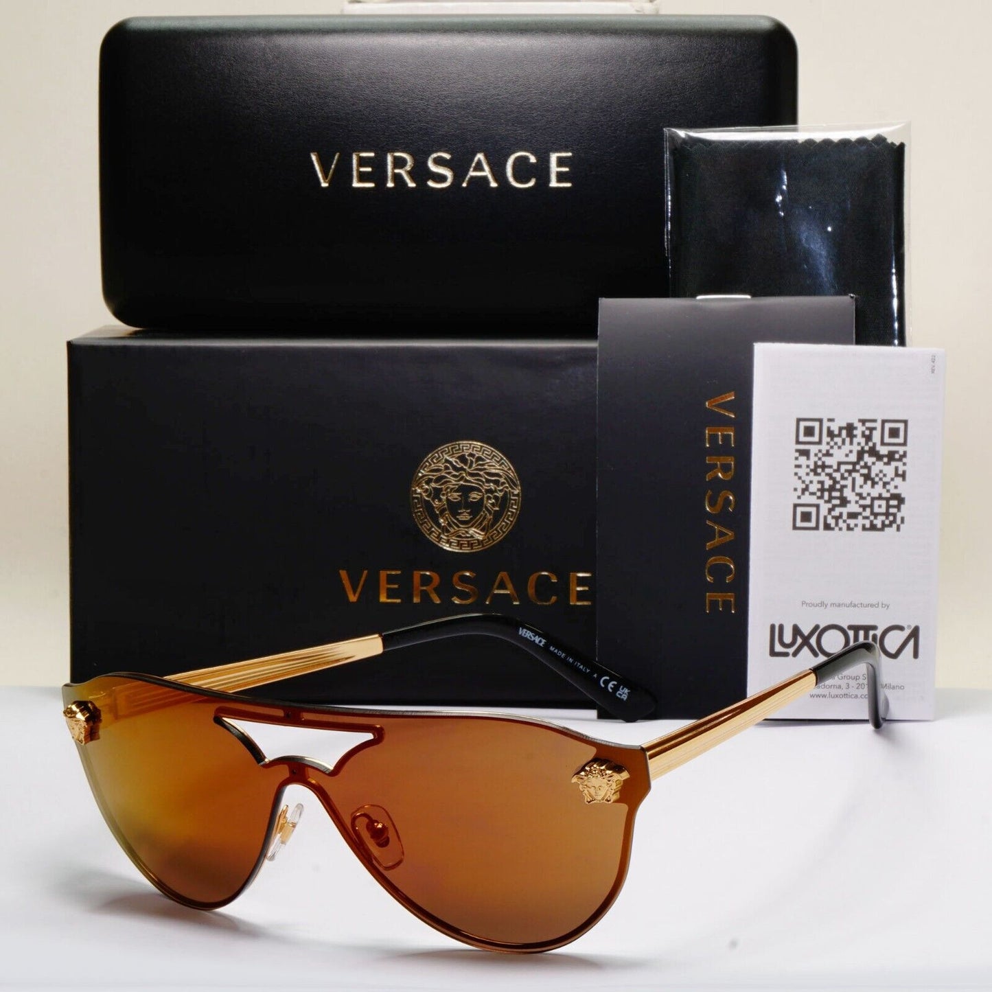 Versace Sunglasses Gold Medusa Brown Mirror Bronze Visor MOD VE 2161 1002/F9