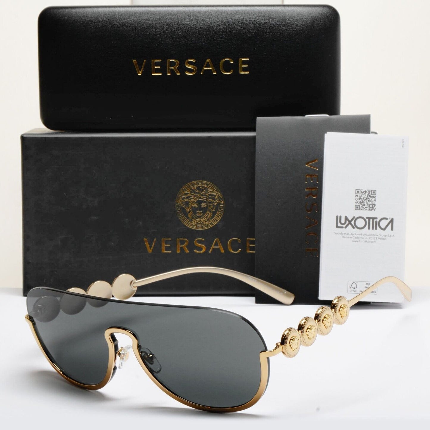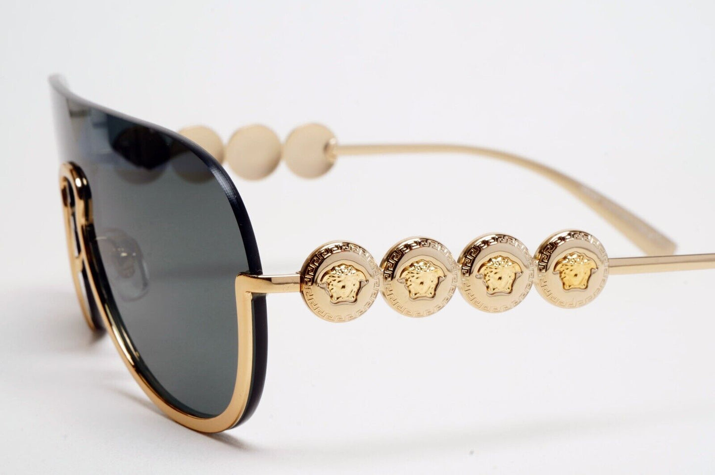 Versace Sunglasses Gold Medusa Visor Shield Shiny Dark Grey MOD VE 2215 1002/87
