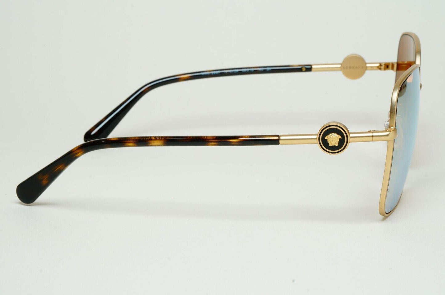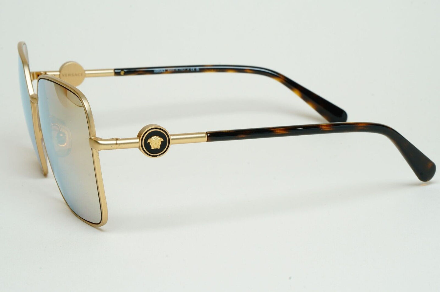 Versace Sunglasses Gold Mirror Brown Square Medusa MOD VE 2227 1410/5A 59mm