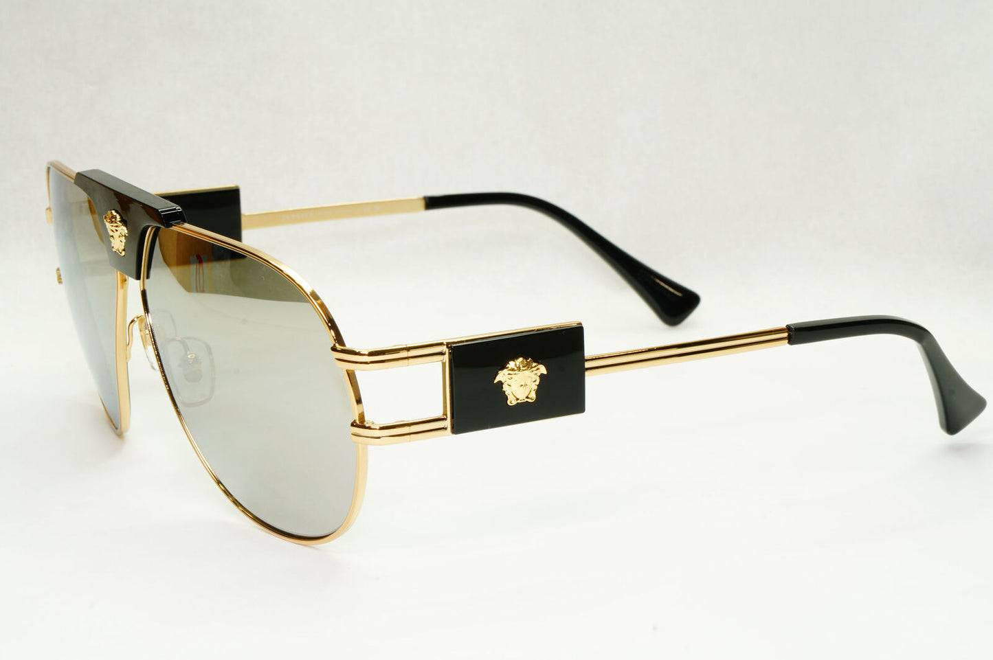 Versace Sunglasses Gold Silver Mirror Metal Pilot Large MOD VE 2252 1002/6G