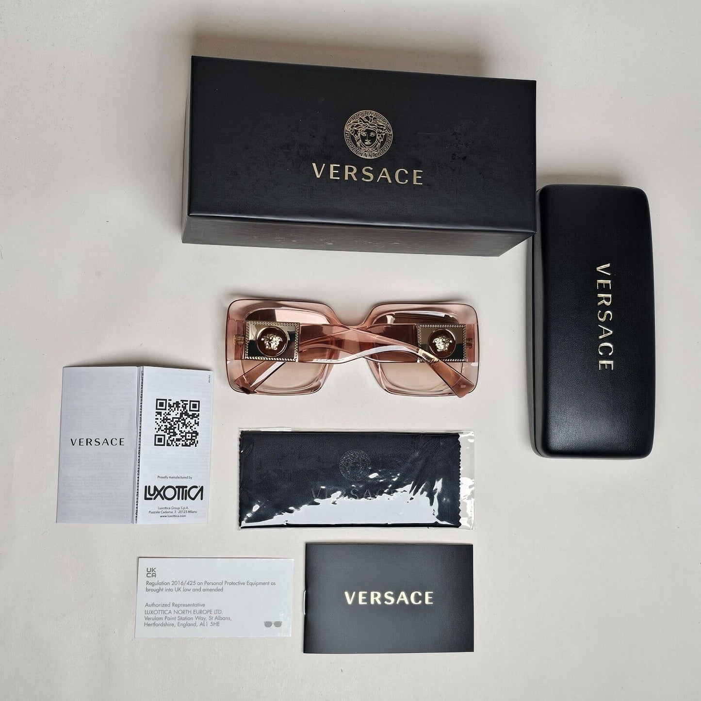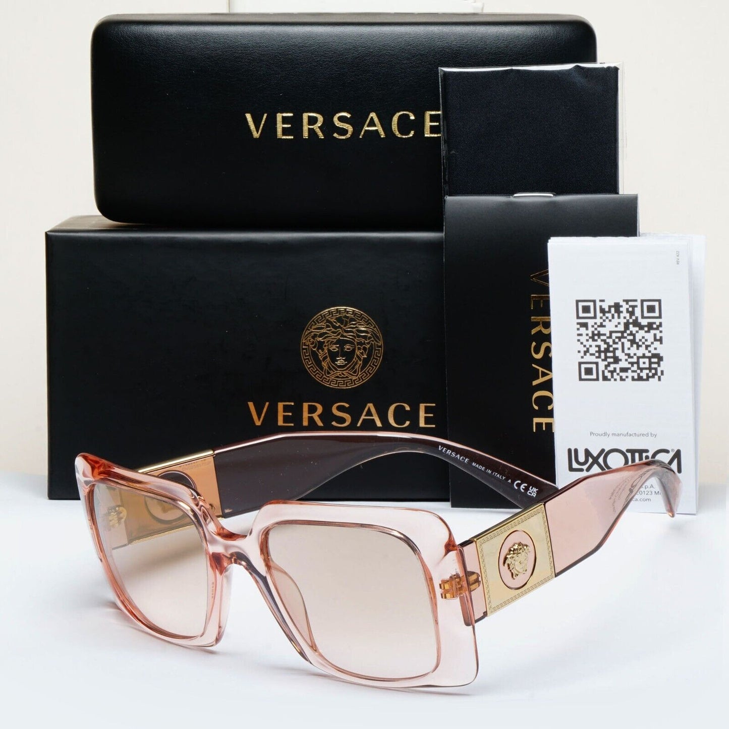 Versace Sunglasses Gold Transparent Pink Medusa Square MOD VE 4405 5339/4E 54mm