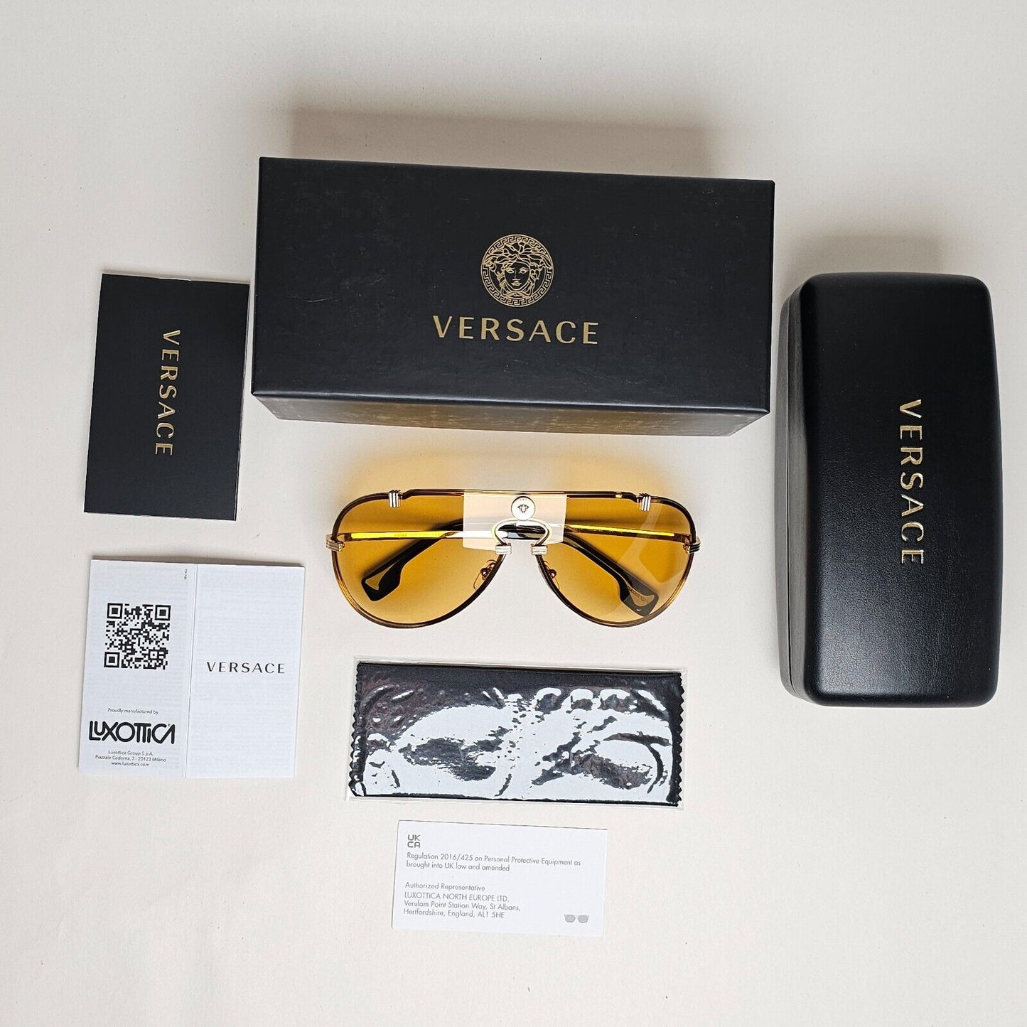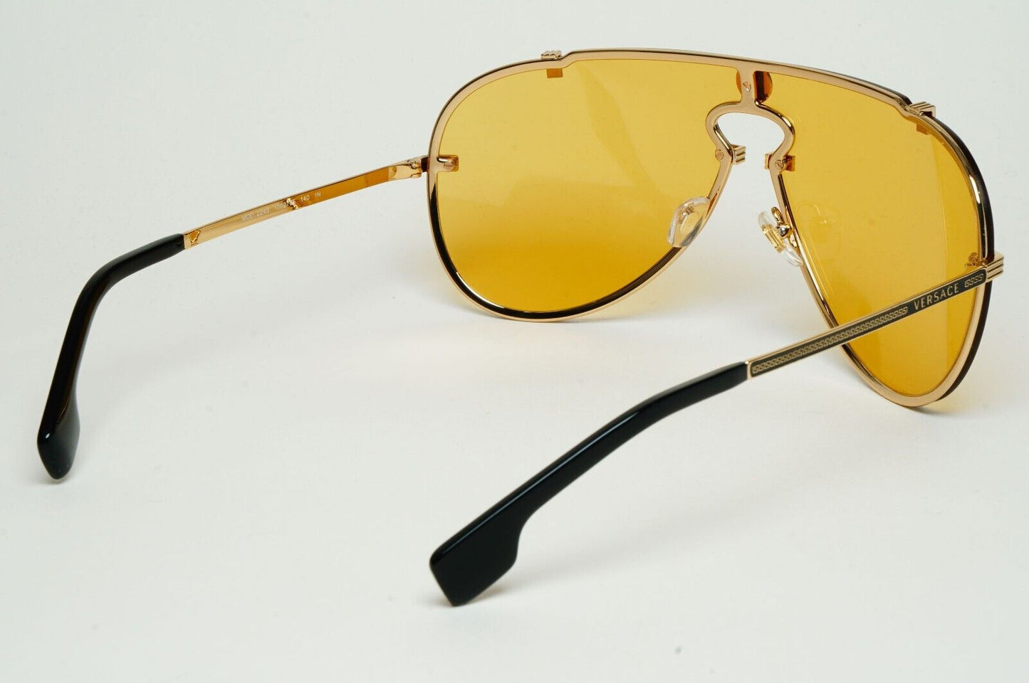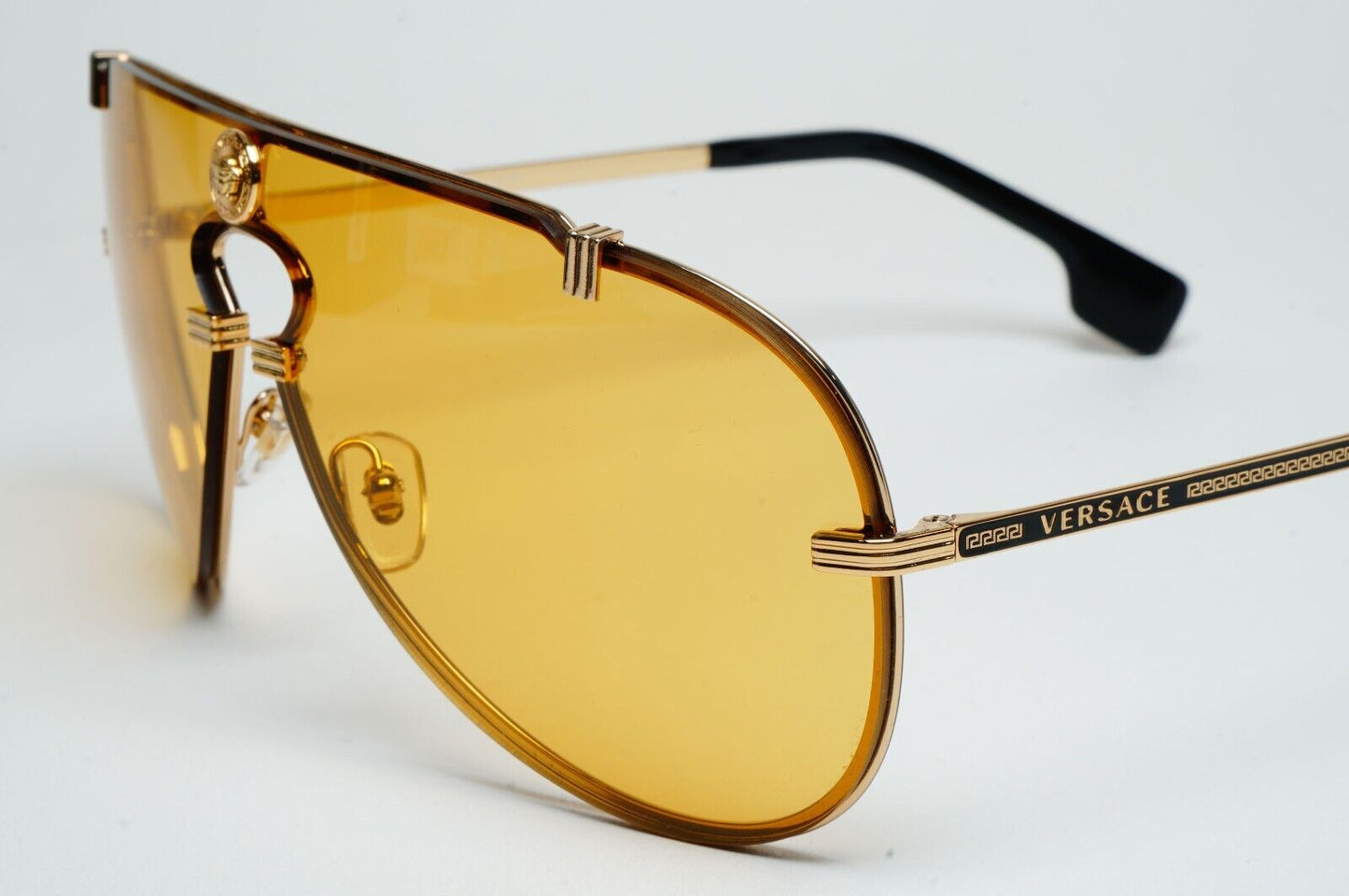 Versace Sunglasses Gold Yellow Pilot Shield Medusa Visor MOD VE 2243 1002/85