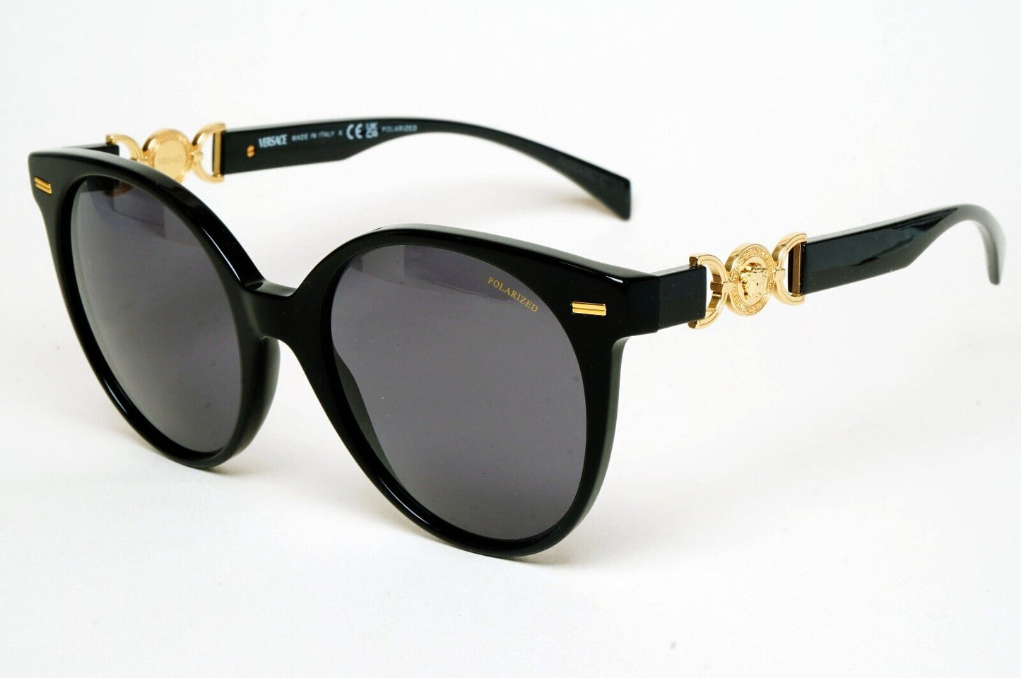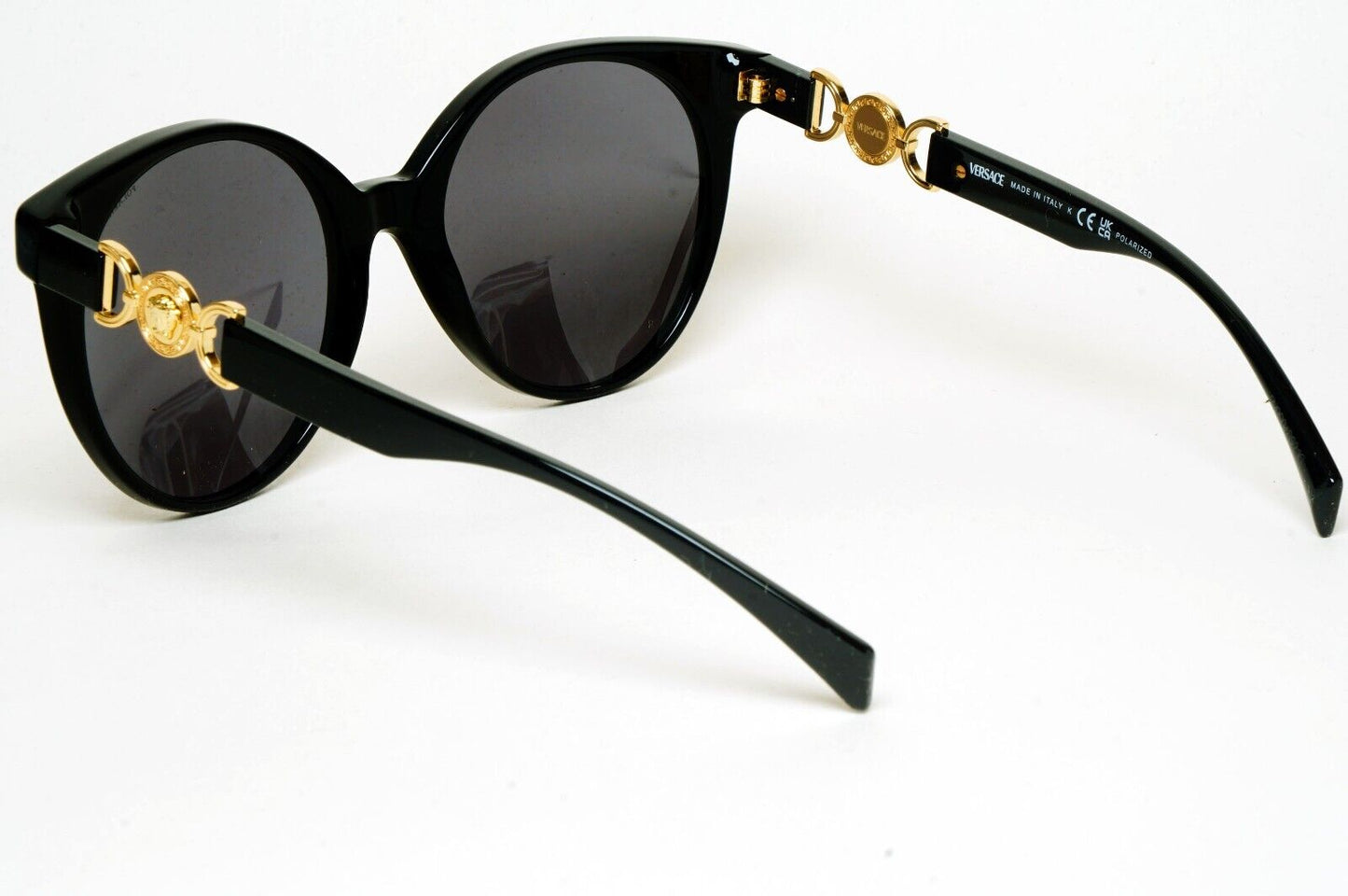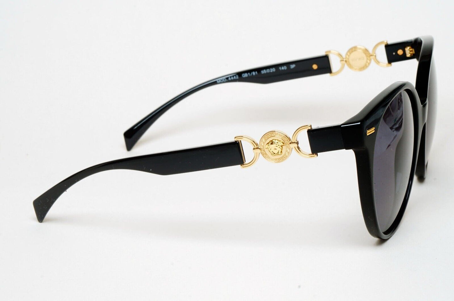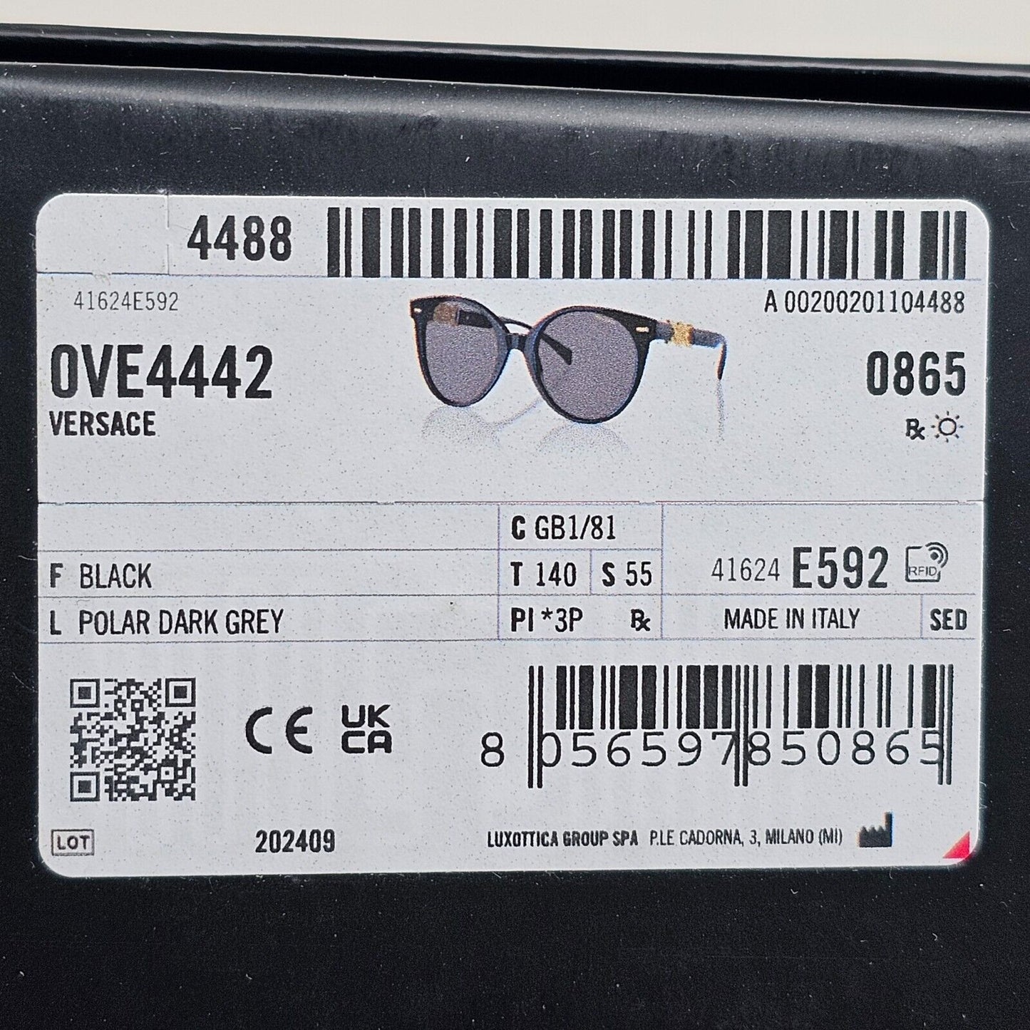 Versace Sunglasses Polarized Black Gold Medusa Grey Round MOD VE 4442 GB1/81