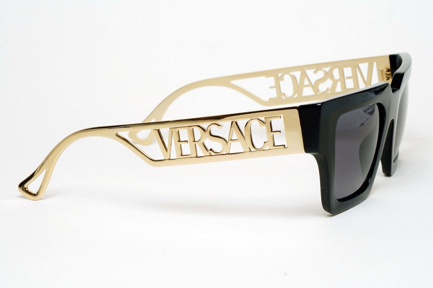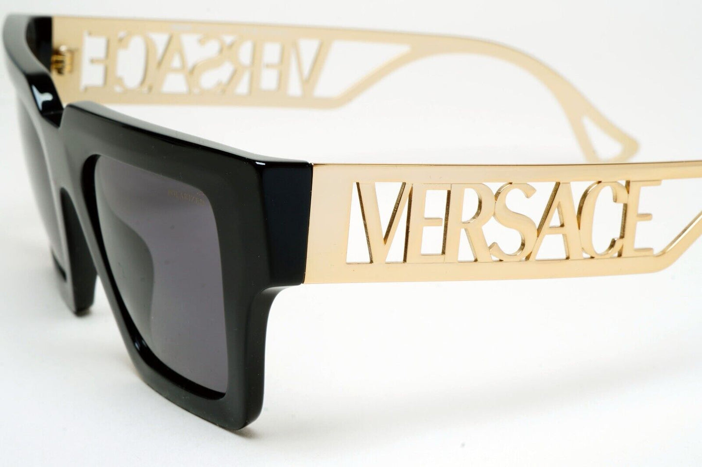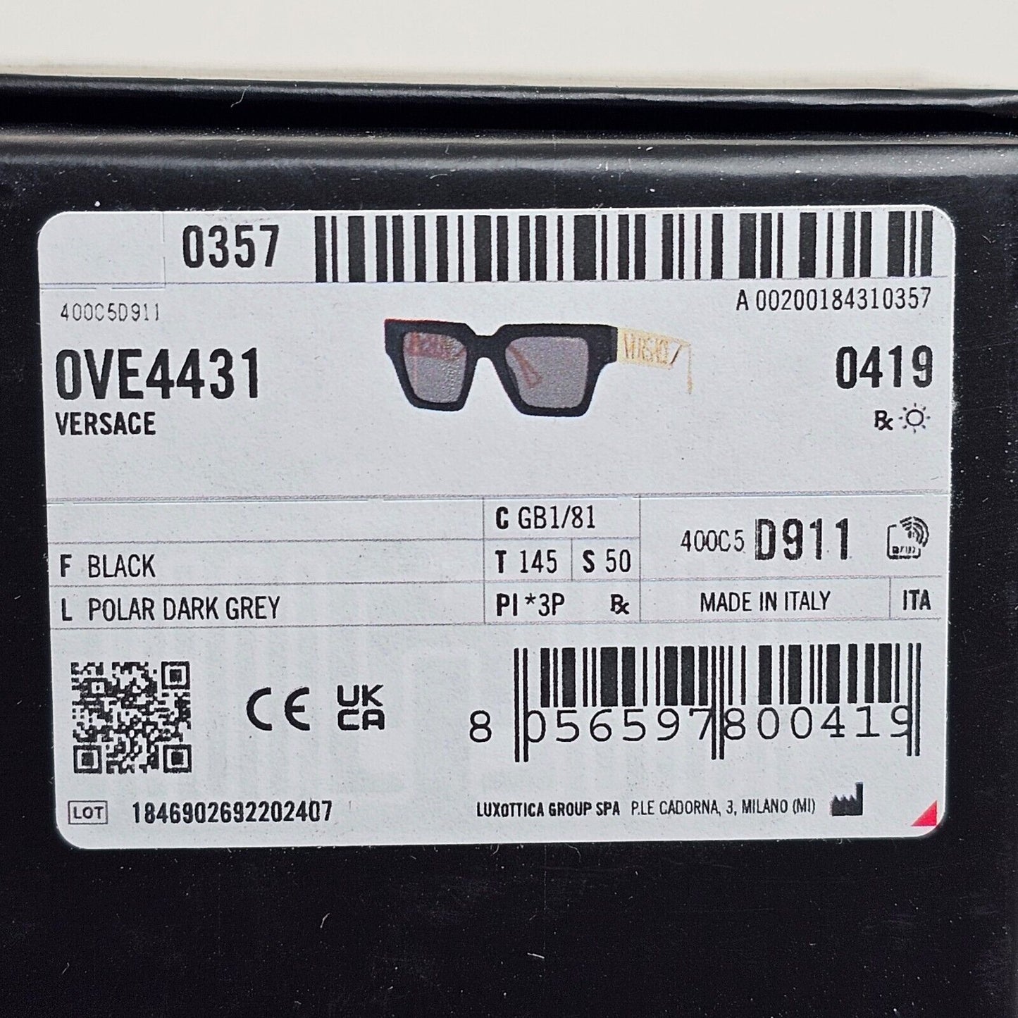 Versace Sunglasses Polarized Black Gold Square Grey MOD VE 4431 GB1/81 50mm