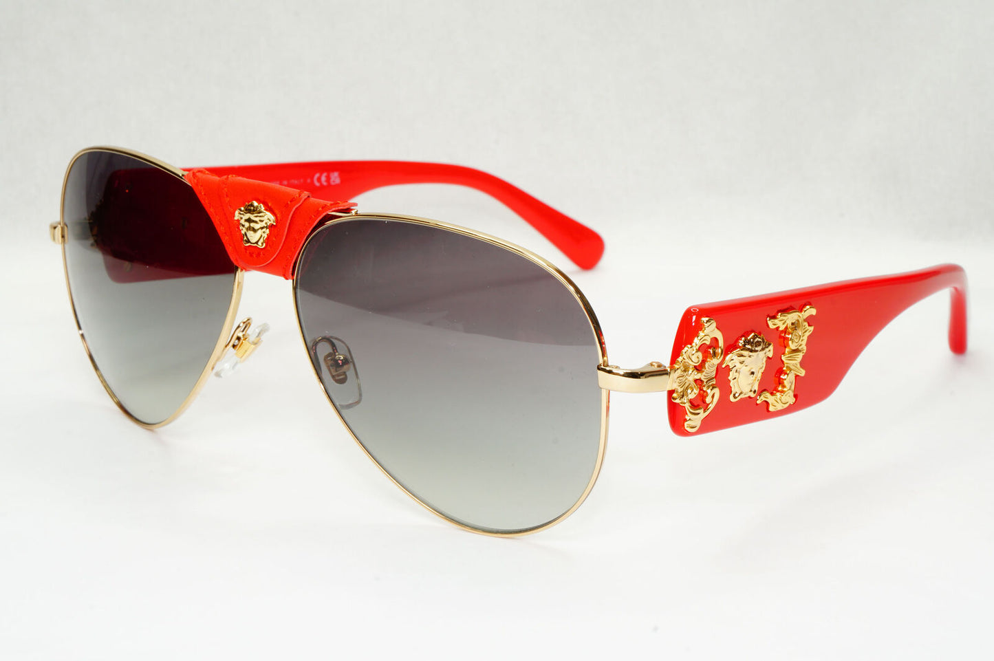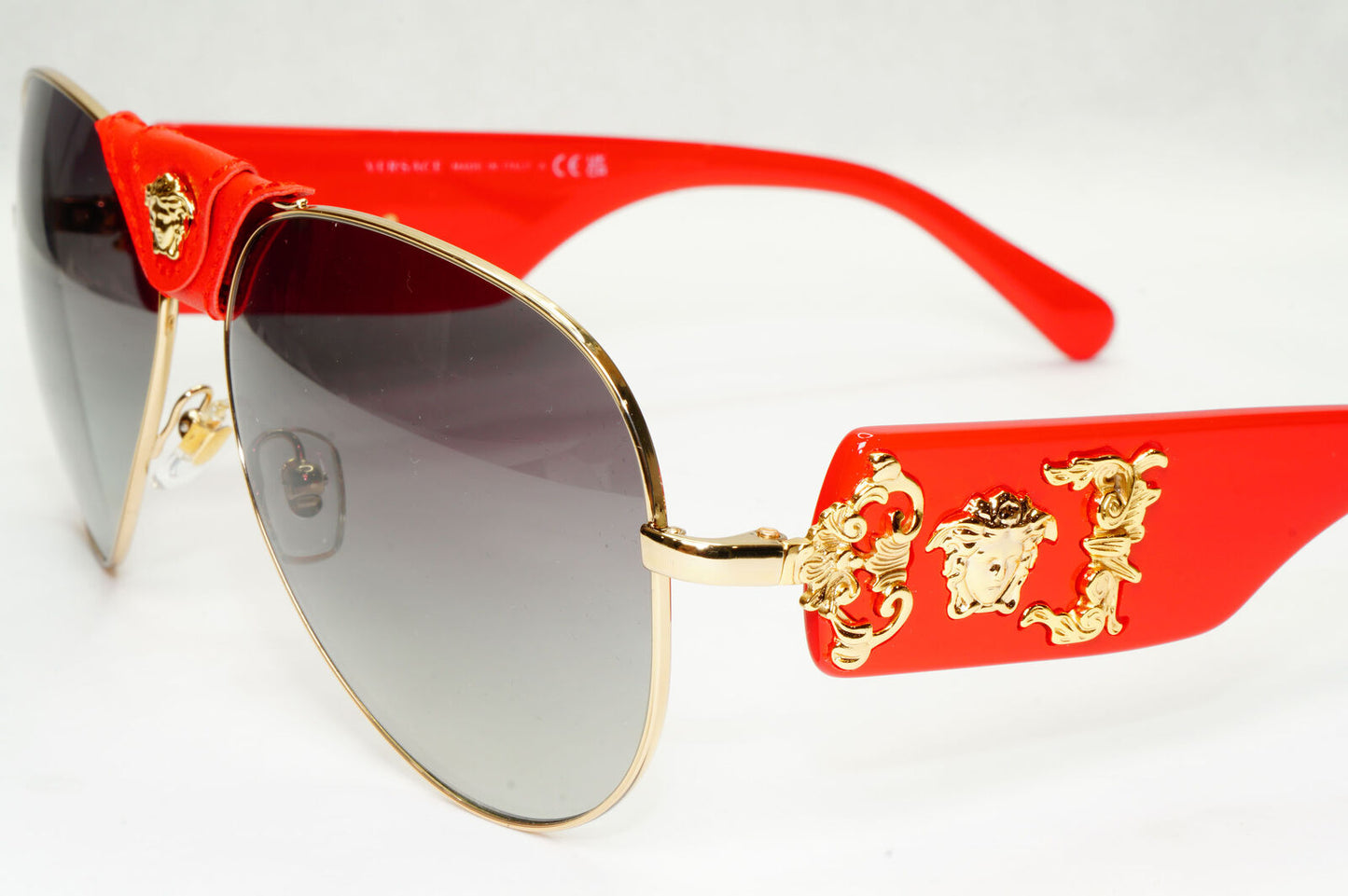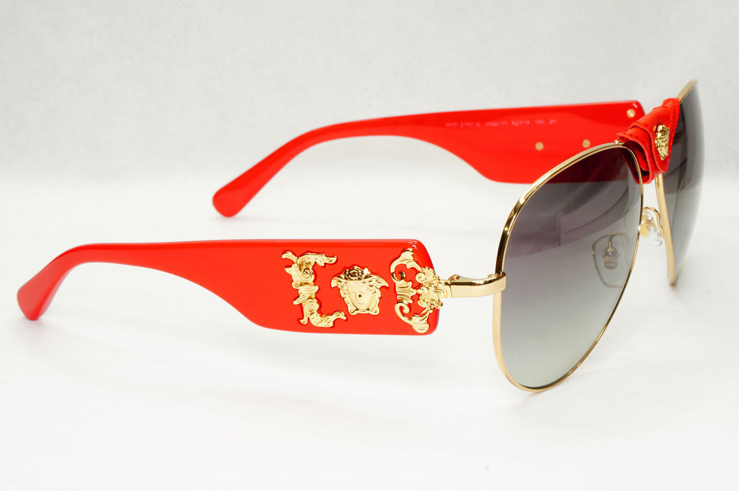 Versace Sunglasses Red Gold Grey Gradient Medusa Pilot MOD VE 2150-Q 1002/11 VV