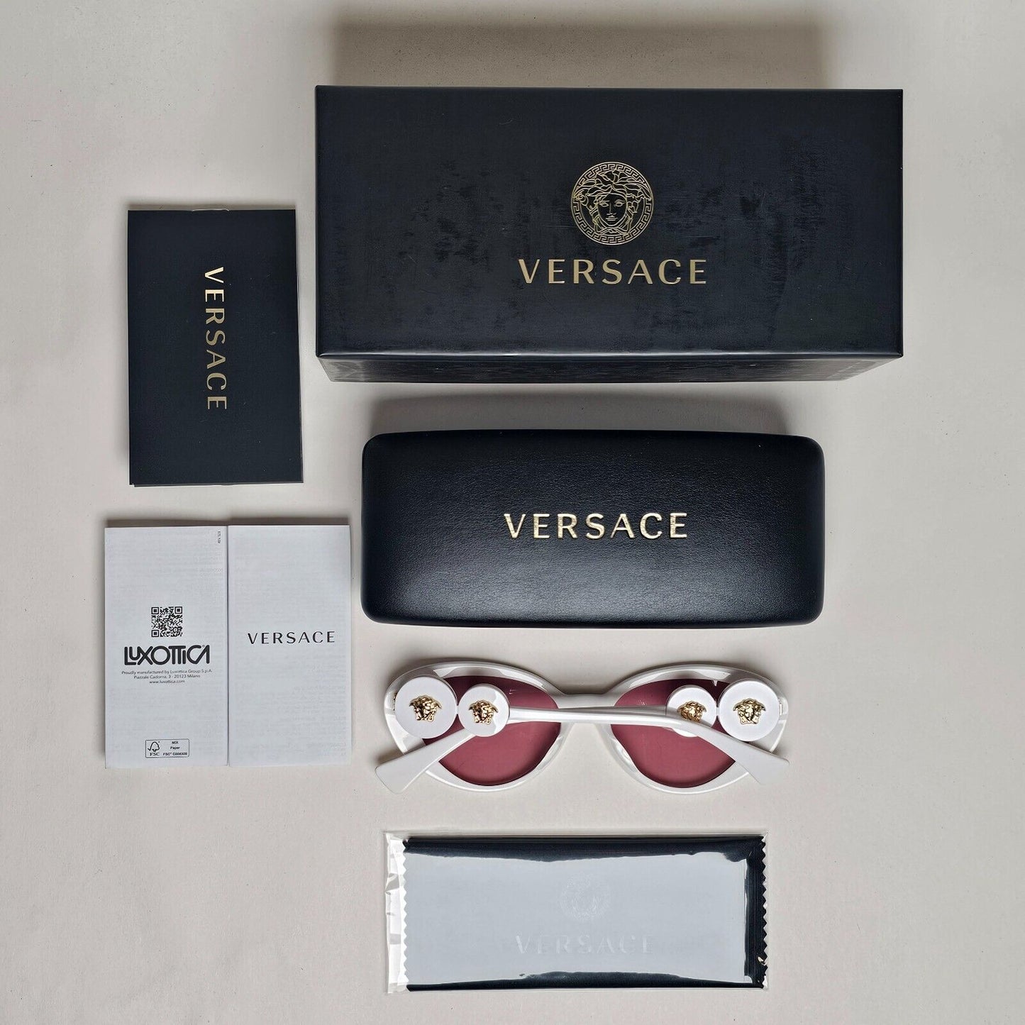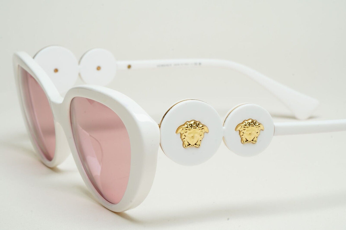 Versace Sunglasses White Cat Eye Pale Pink Gold Medusa MOD VE 4433-U 314/84 54mm