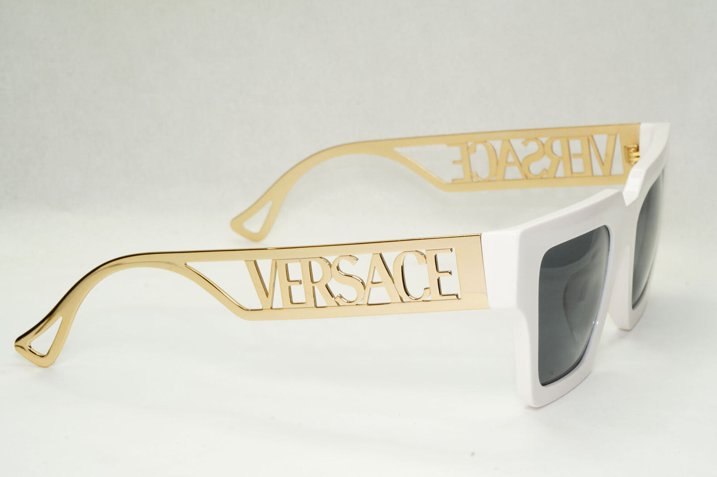 Versace Sunglasses White Gold Letters Big Logo Square MOD VE 4431-F 401/87 50mm