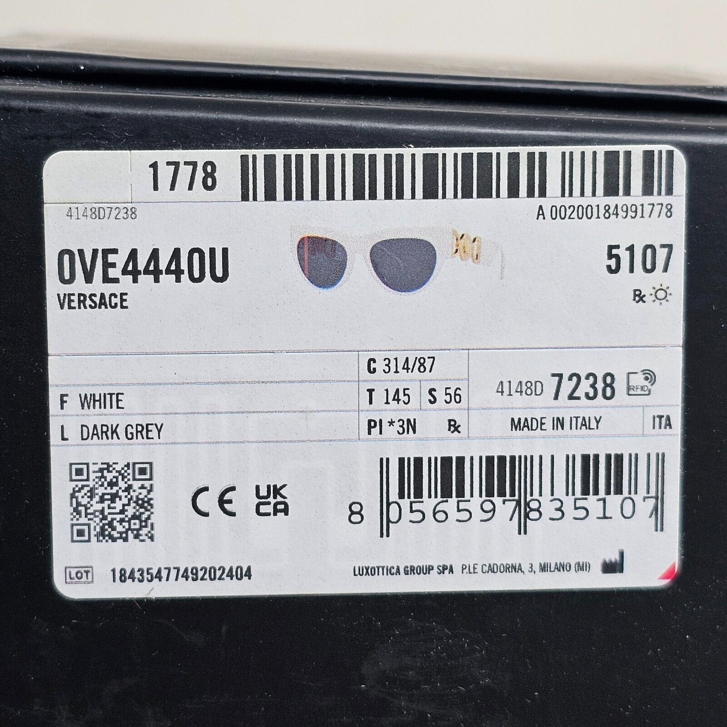 Versace Sunglasses White Gold Medusa Grey Square MOD VE 4440-U 314/87 56mm