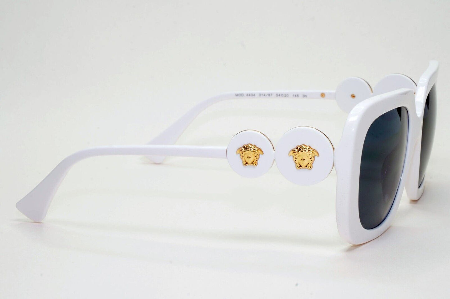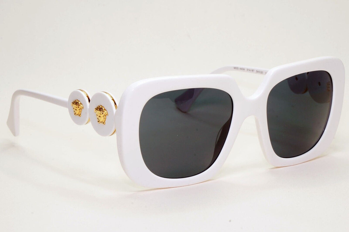 Versace Sunglasses White Gold Medusa Square Black Grey MOD VE 4434 314/87 54mm