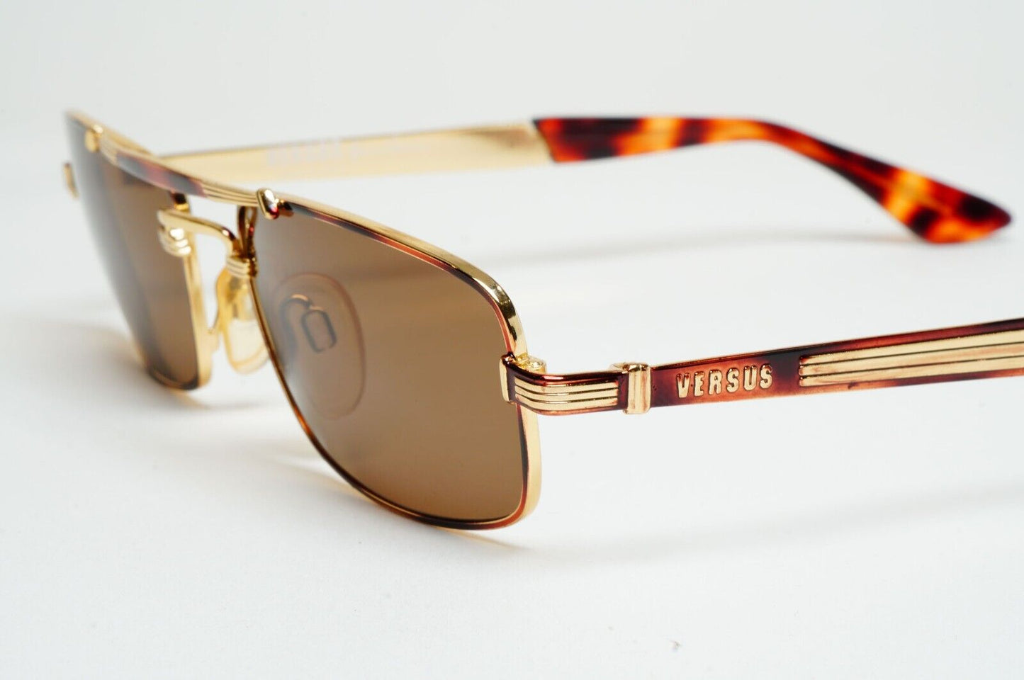 Versus Sunglasses 1996 by Gianni Versace Vintage Rectangle Brown MOD F06 COL 34M