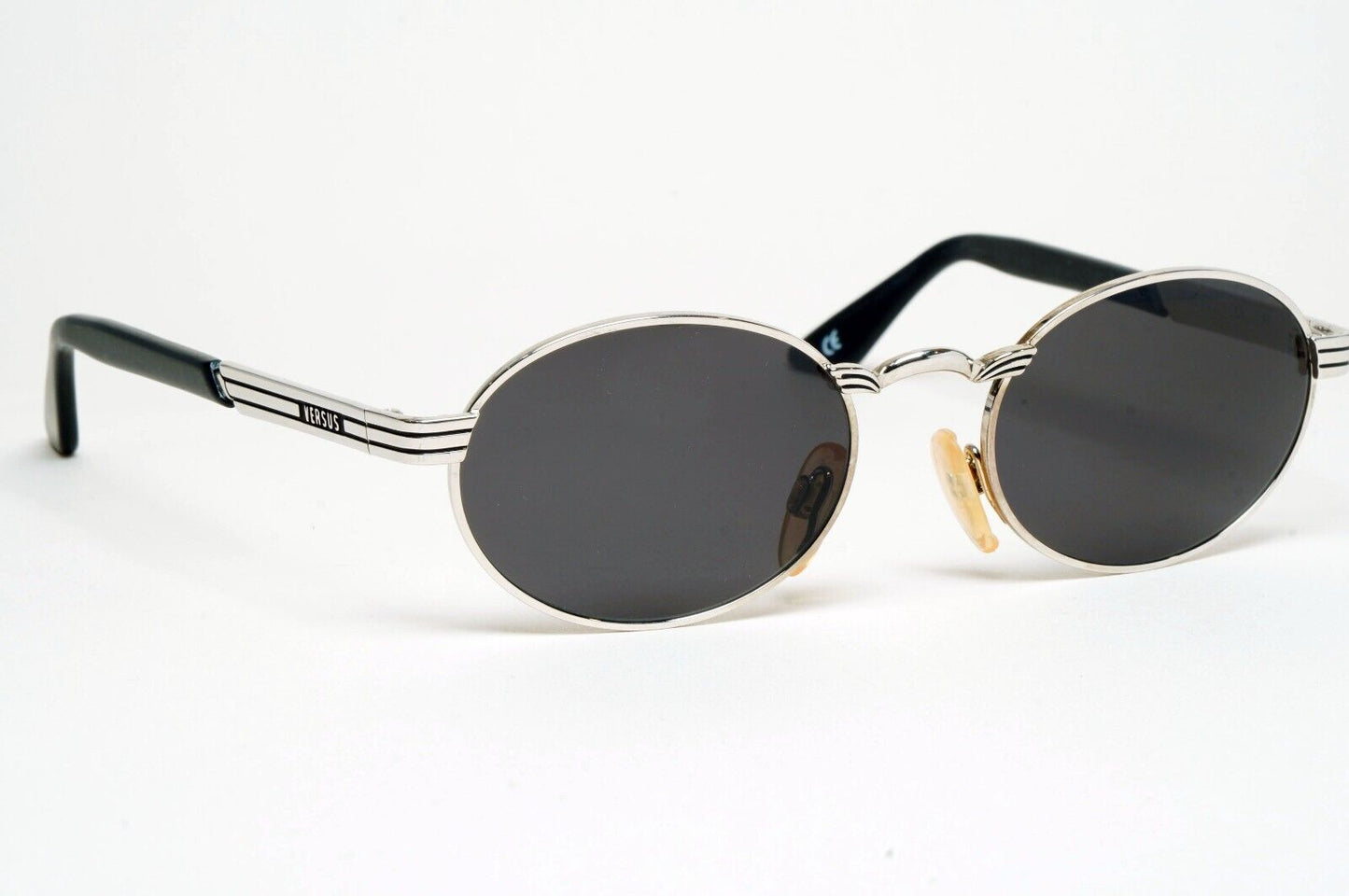 Versus Sunglasses 1996 by Gianni Versace Vintage Silver Oval MOD F07 COL 12M